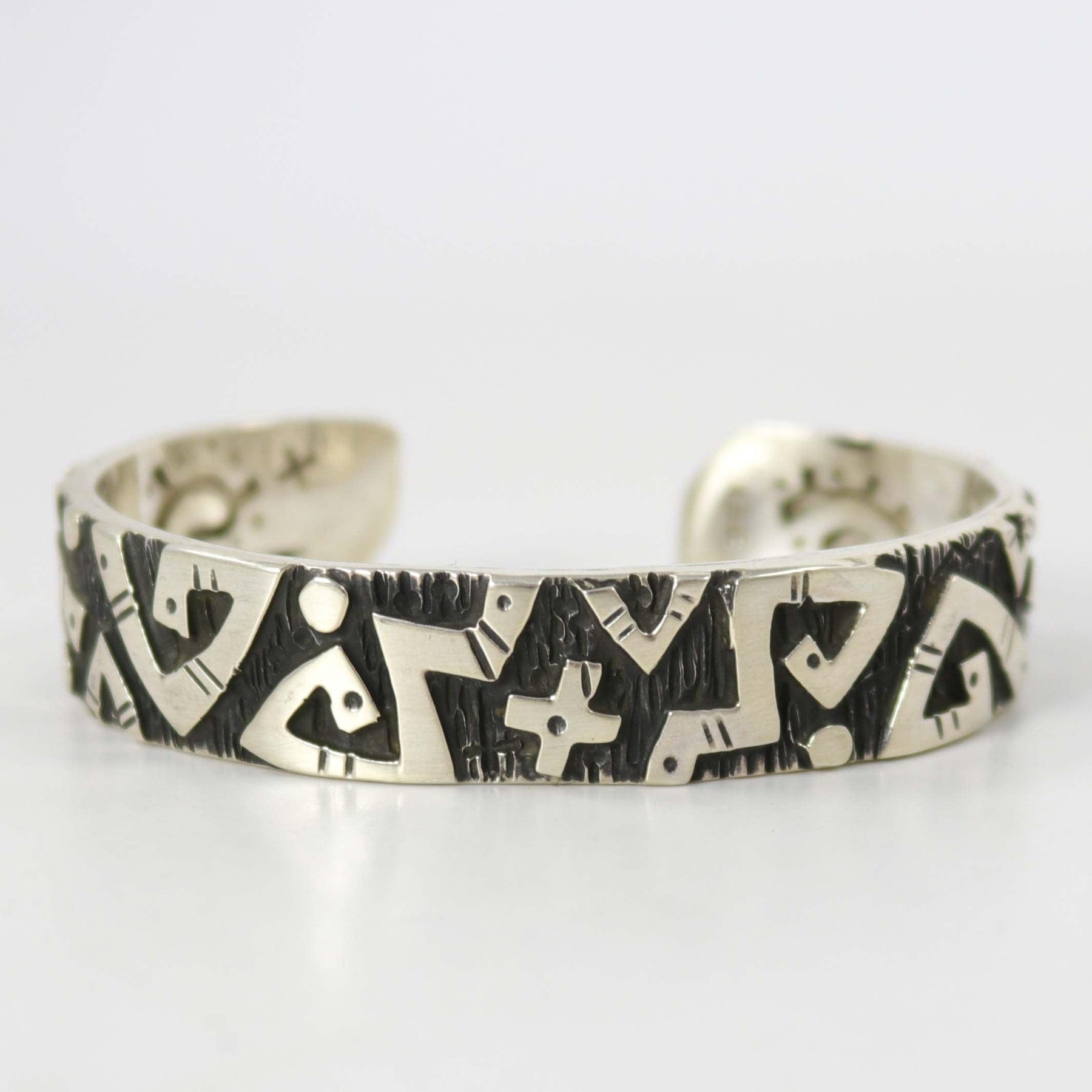 Sterling Silver Cuff Bracelet with Appliqué Anasazi Migration Designs.