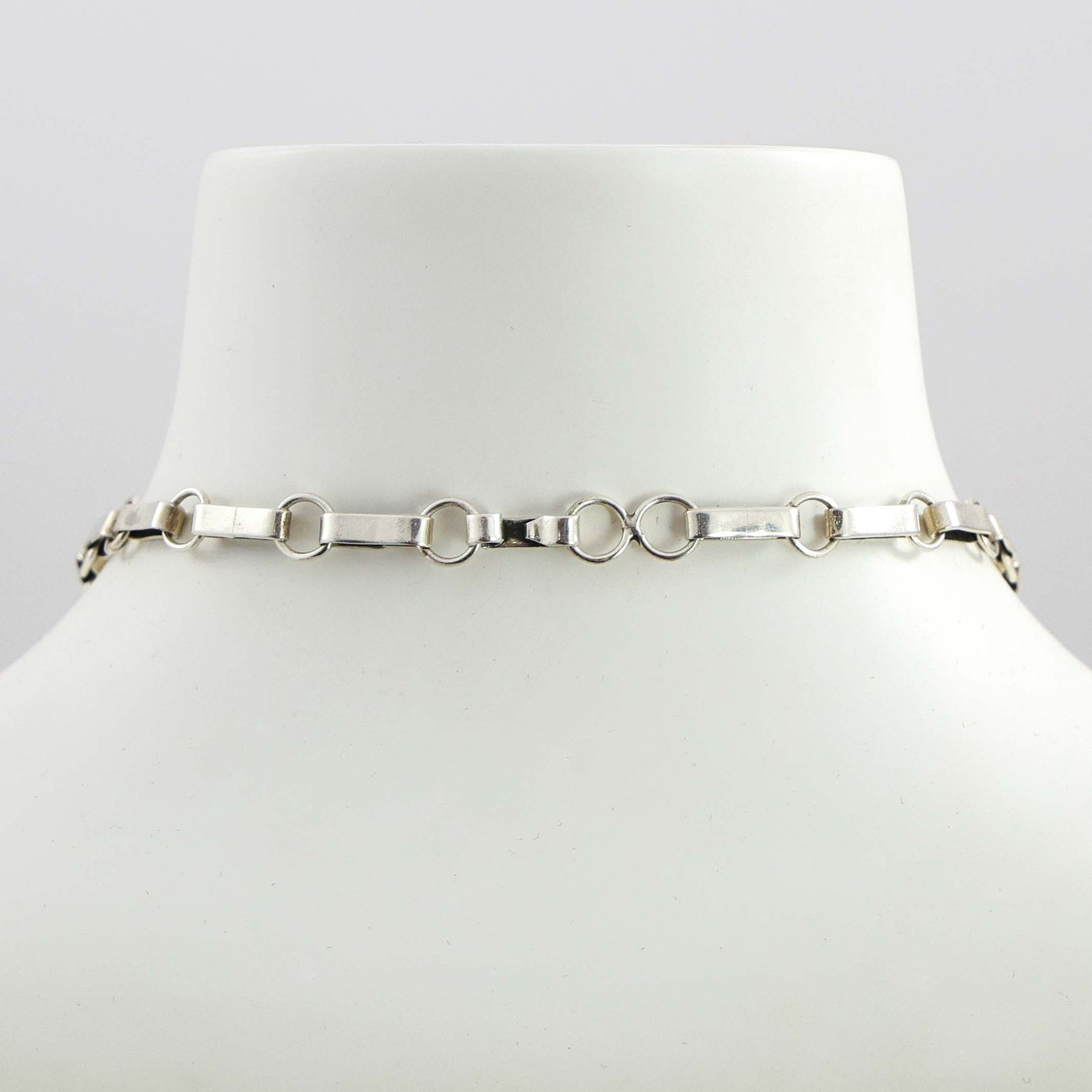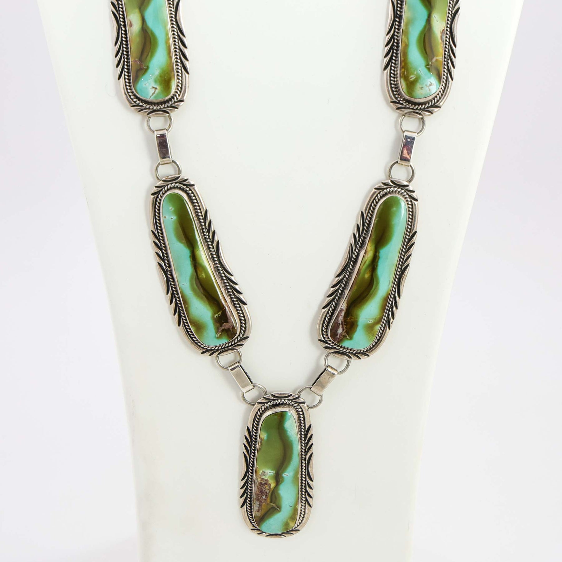 Early 2000s Sterling Silver Link Necklace set with Natural Royston Turquoise from Nevada.
