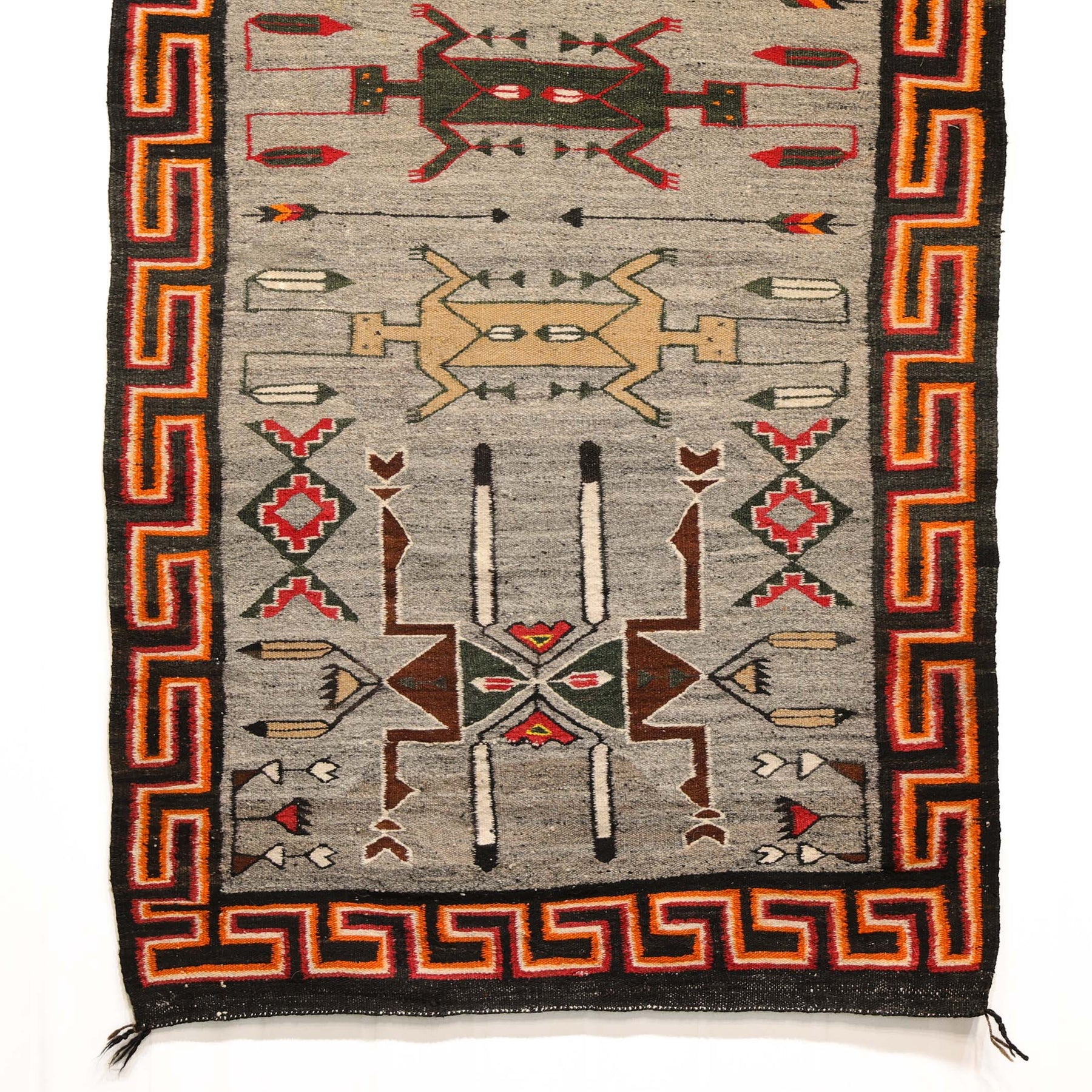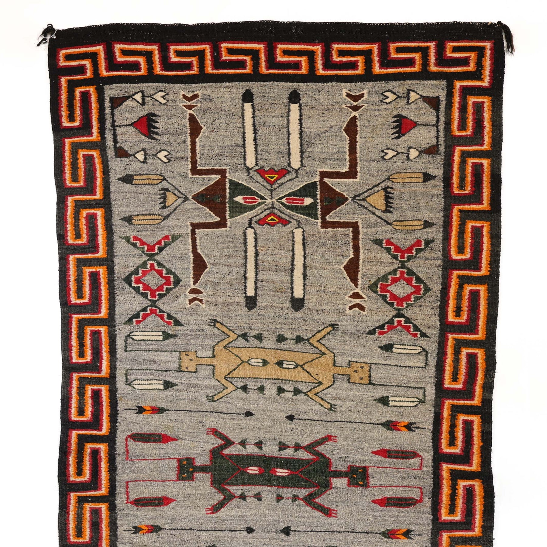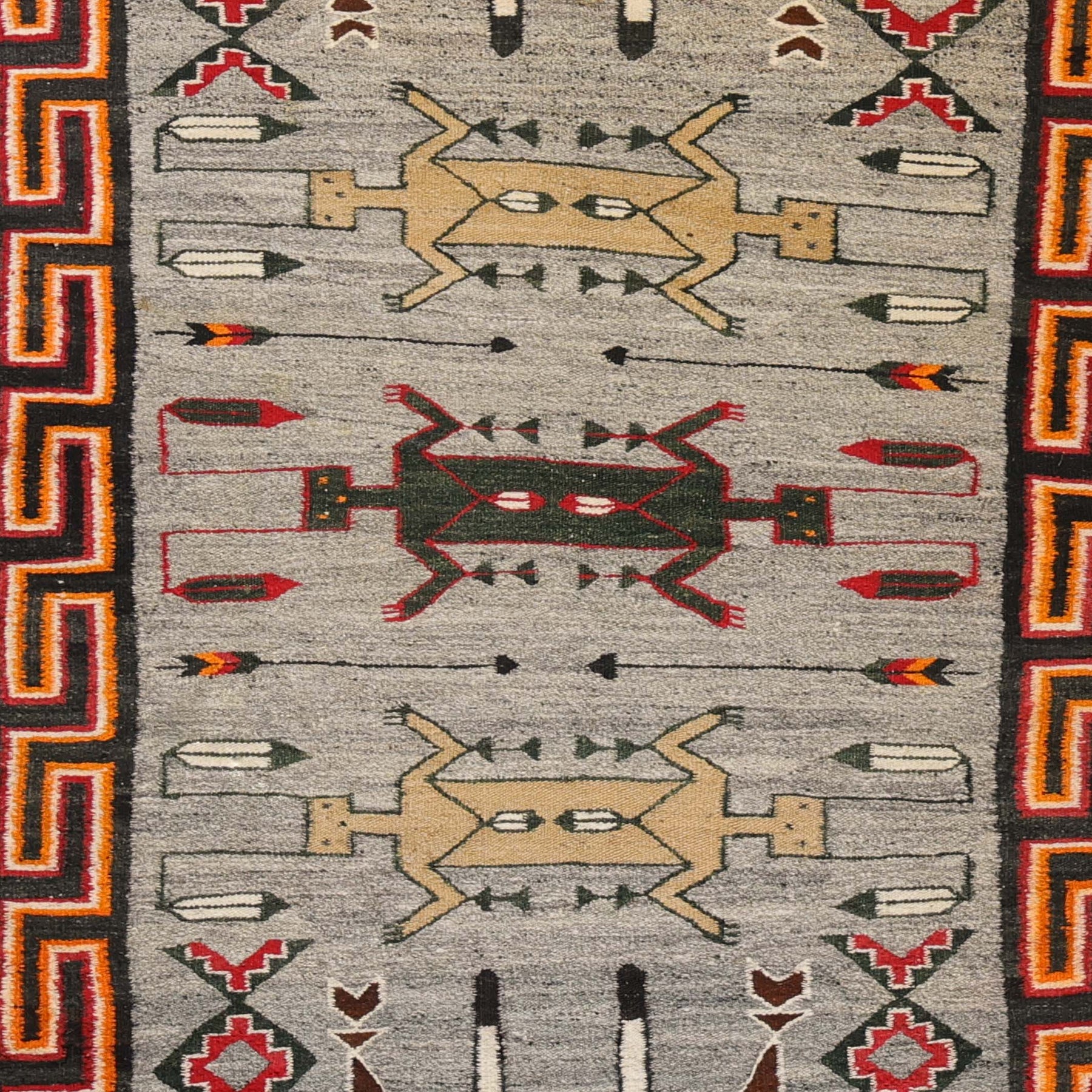 1925 Handwoven Navajo Teec Nos Pos Pictorial Weaving with Hand-Carded and Spun Wool Depicting Three Weasels Found in Navajo Sandpaintings. This weaving is in excellent overall condition.
