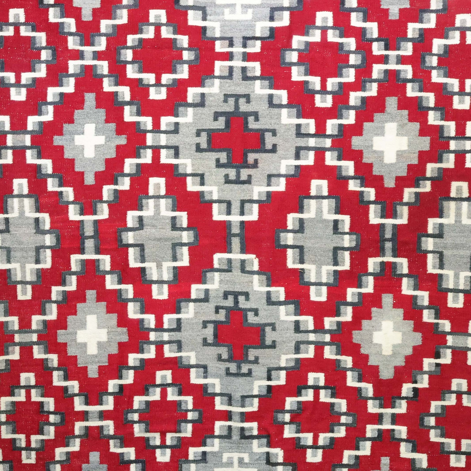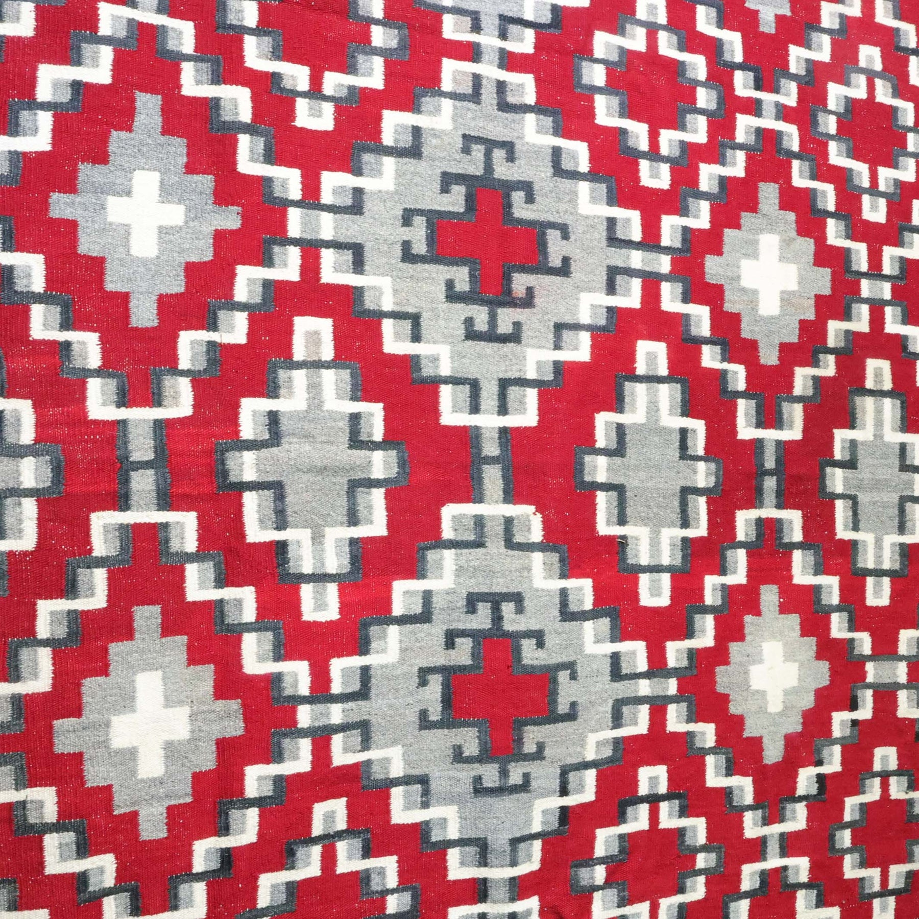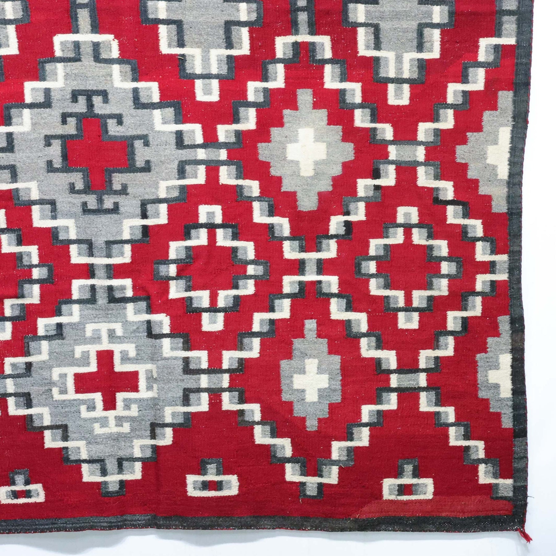 Handwoven 1940s Navajo Ganado Weaving with Hand-Carded and Spun Wool. This weaving has some slight bleeding, a few small holes, A and B sides, and has been priced accordingly.