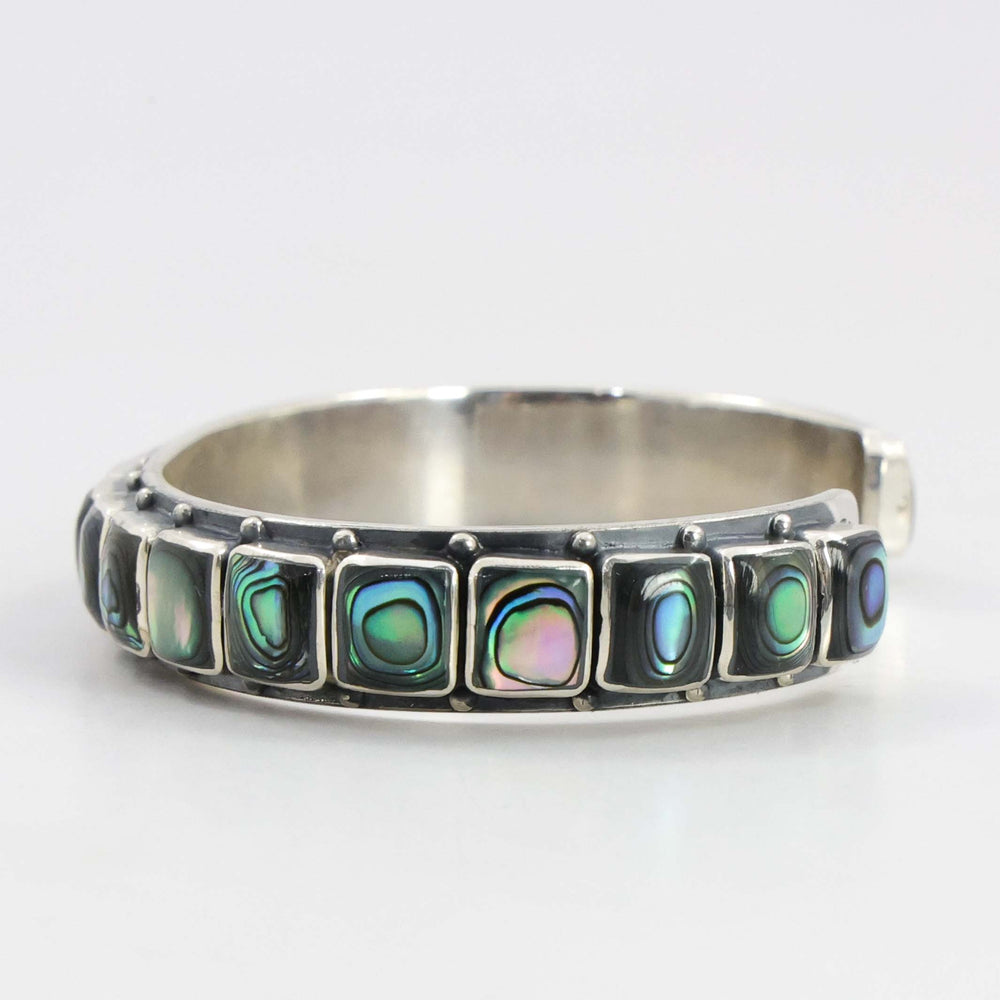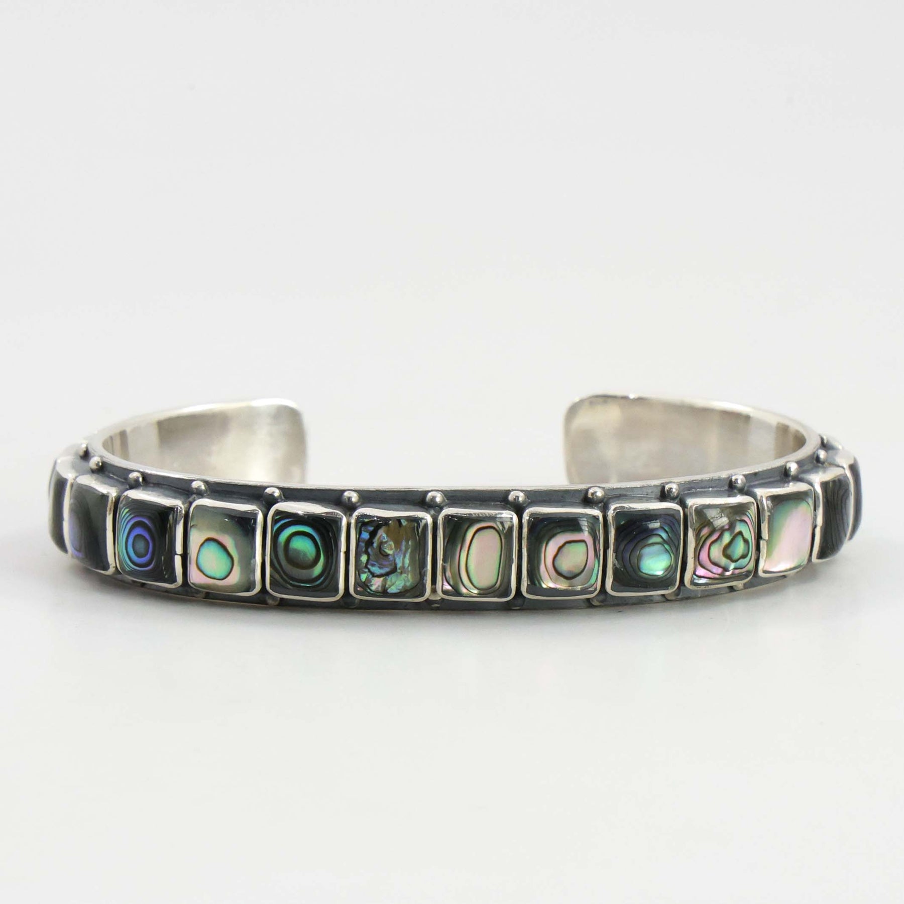 Sterling Silver Cuff Bracelet set with Row of Abalone Shell.