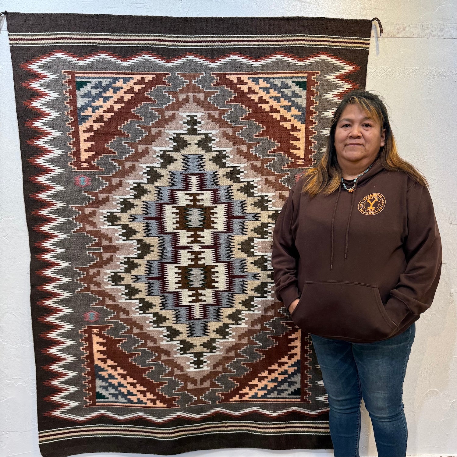 A bold yet refined example of contemporary Navajo textile art, ideal as a wall hanging or floor rug.