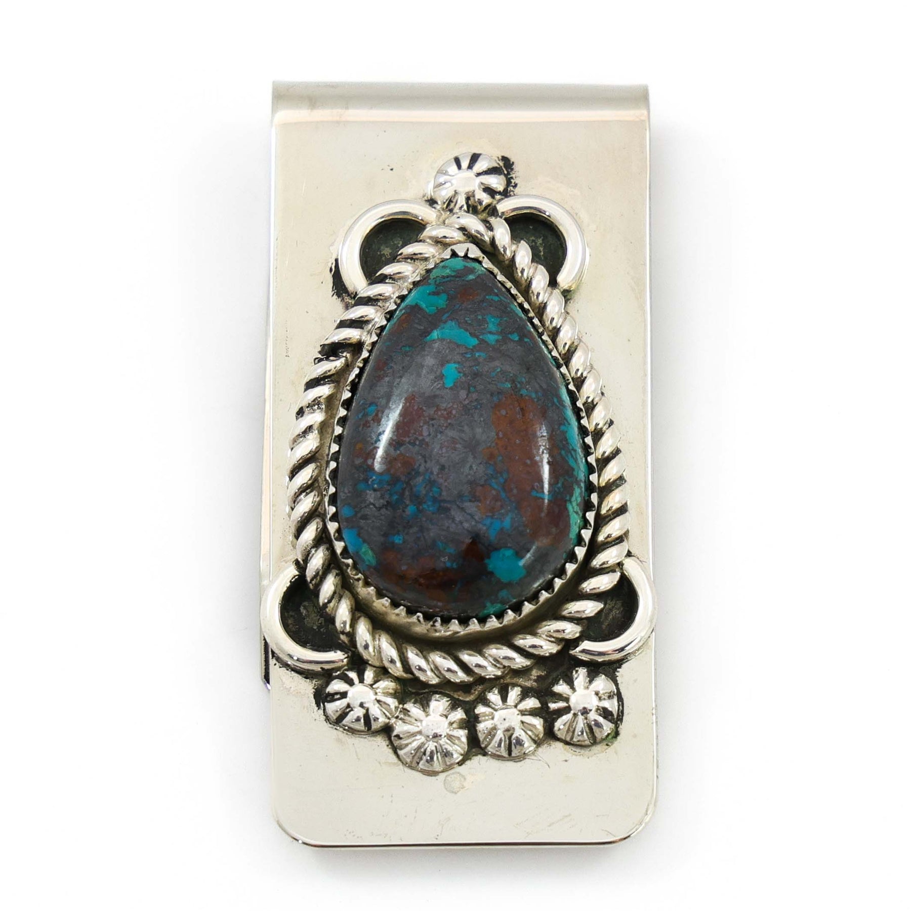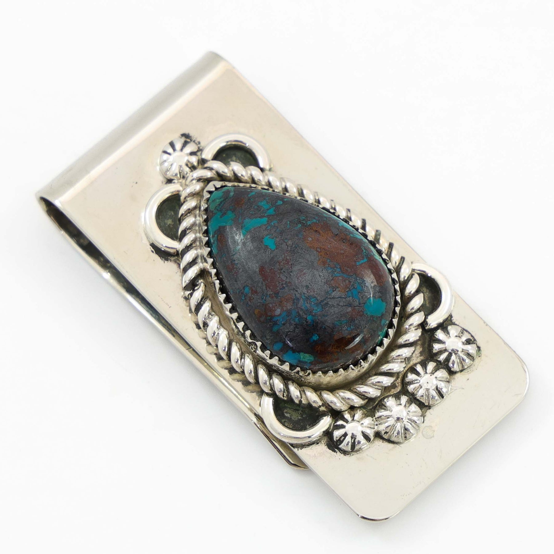 Sterling Silver Money Clip set with Chrysocolla.
