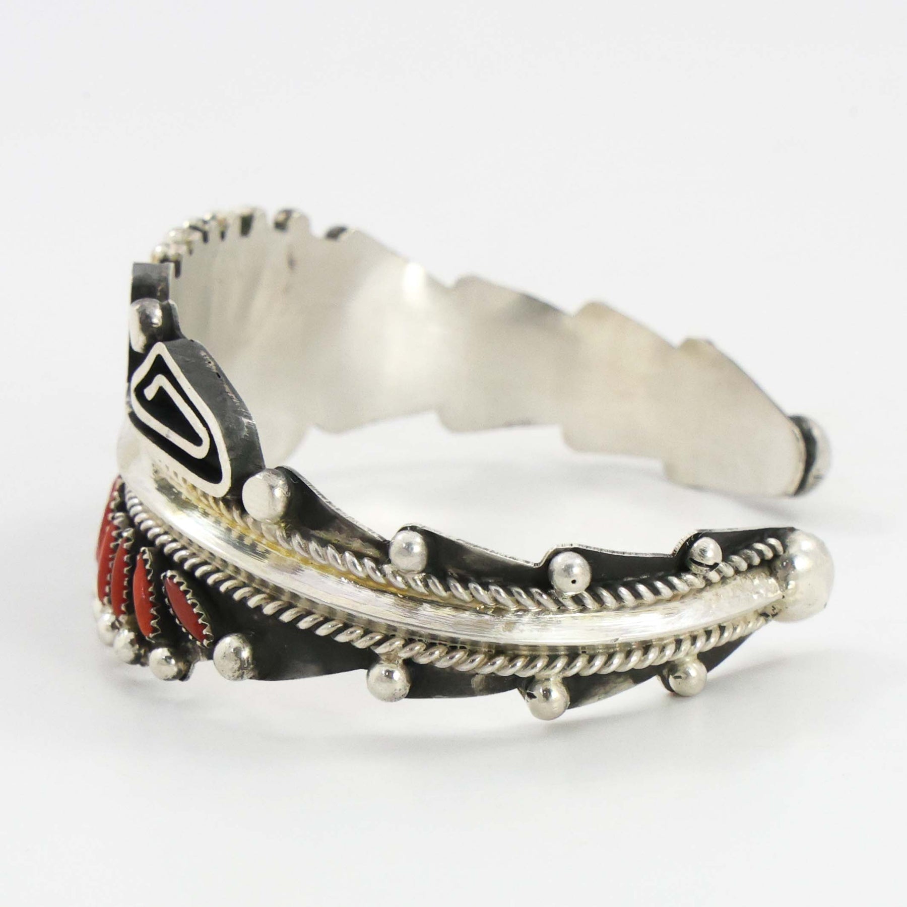 Sterling Silver Cuff Bracelet set with Petitpoint Mediterranean Coral and Appliqué Designs.
