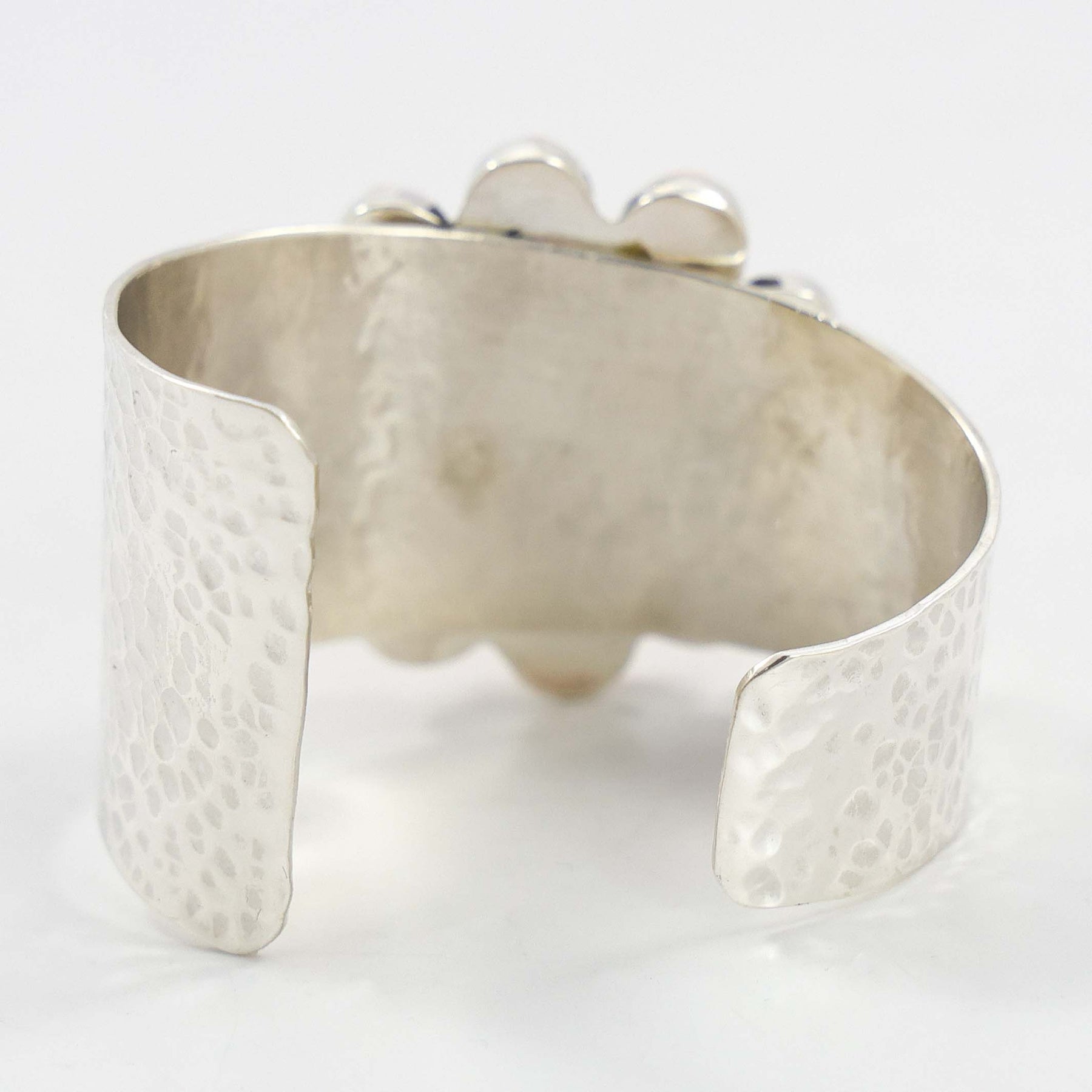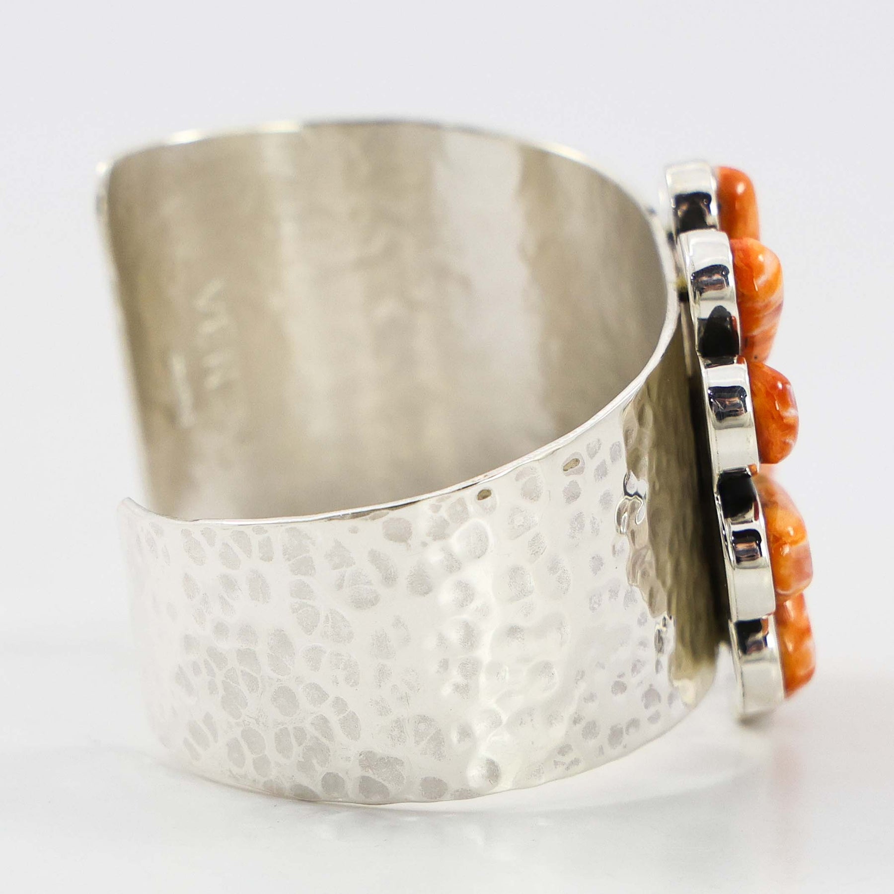 Sterling Silver Flower Cuff Bracelet set with Orange Spiny Oyster Shell and Stabilized Turquoise.