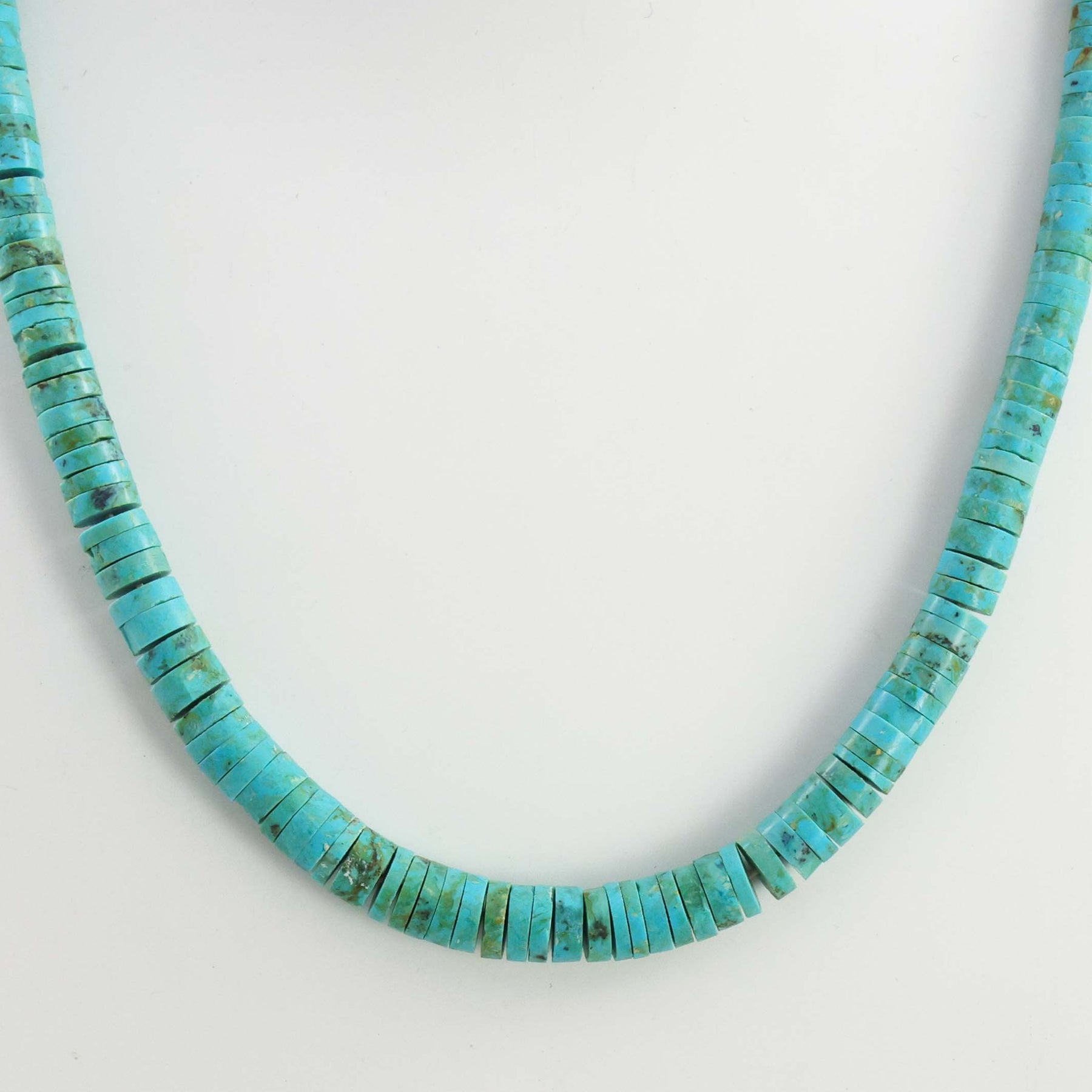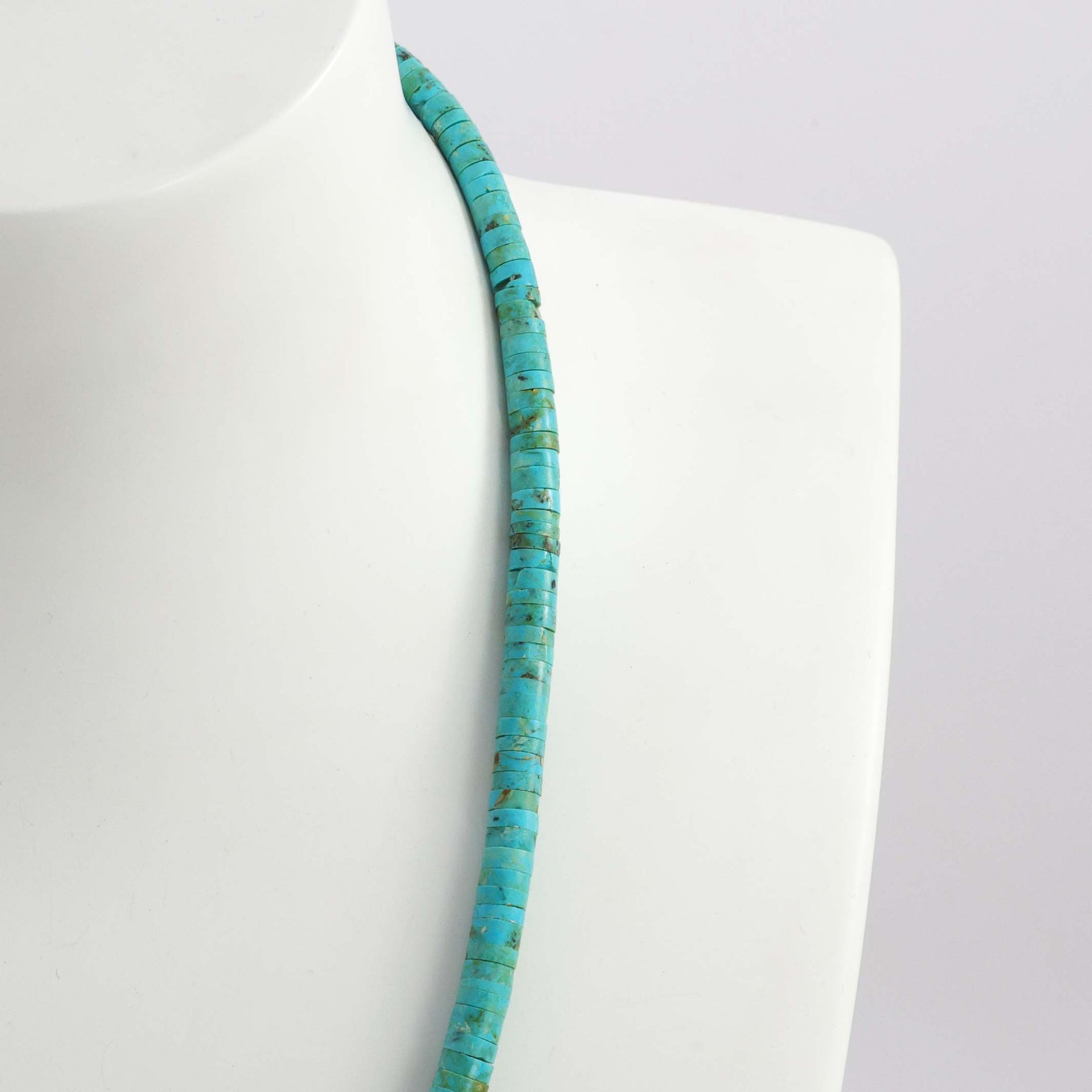 Single Strand Necklace with Hand-Rolled Stabilized Kingman Turquoise Beads and a Sterling Silver Clasp.