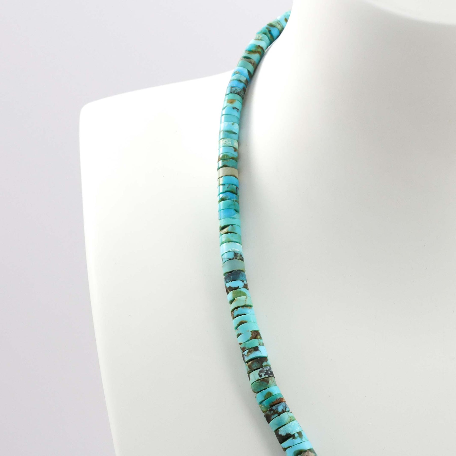 Single Strand Necklace with Hand-Rolled Stabilized Kingman Turquoise Beads and a Sterling Silver Clasp.