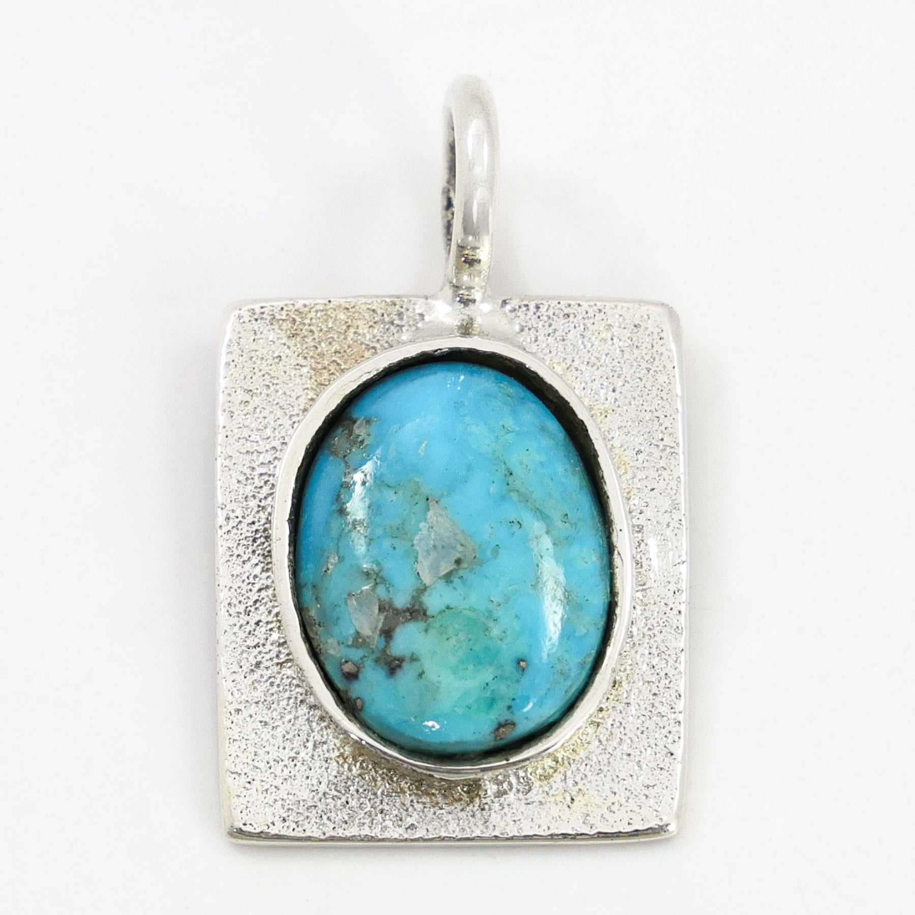 Tufa Cast Sterling Silver Pendant set with Natural Kingman Turquoise from Arizona.