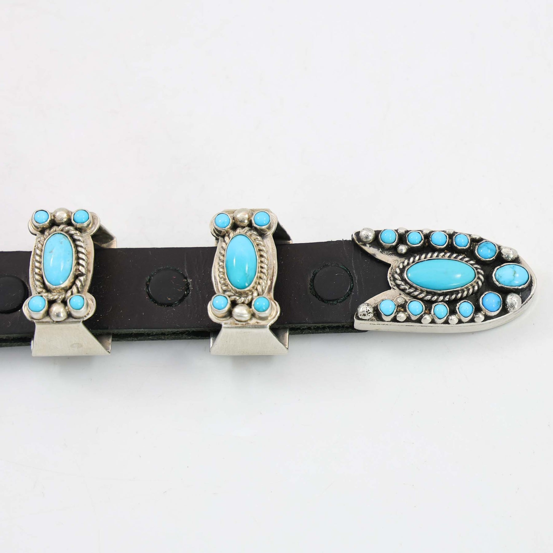Sterling Silver Ranger Set Belt Buckle set with Natural Kingman Turquoise from Arizona.