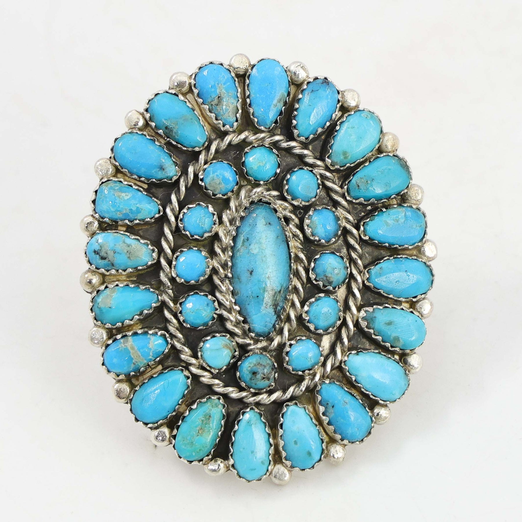 Sterling Silver Ring set with a Cluster of Stabilized Kingman Turquoise from Arizona.