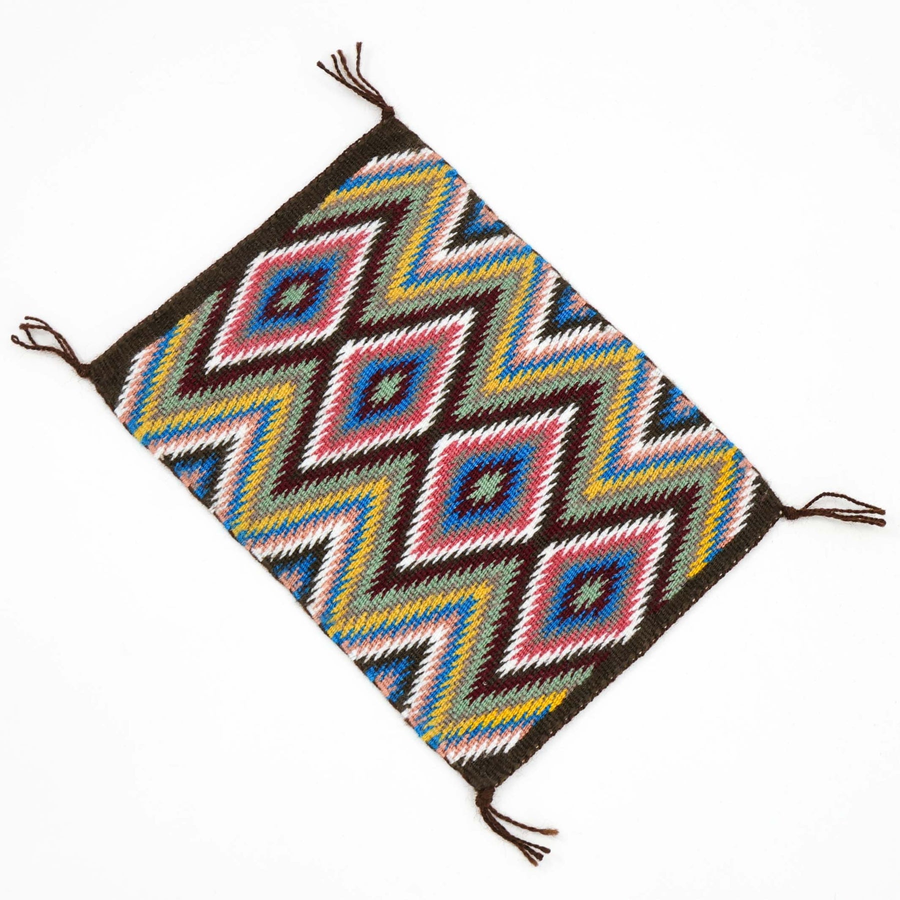 Miniature Fine Handwoven Navajo Eye Dazzler Weaving with a Colorful Serrated Pattern.