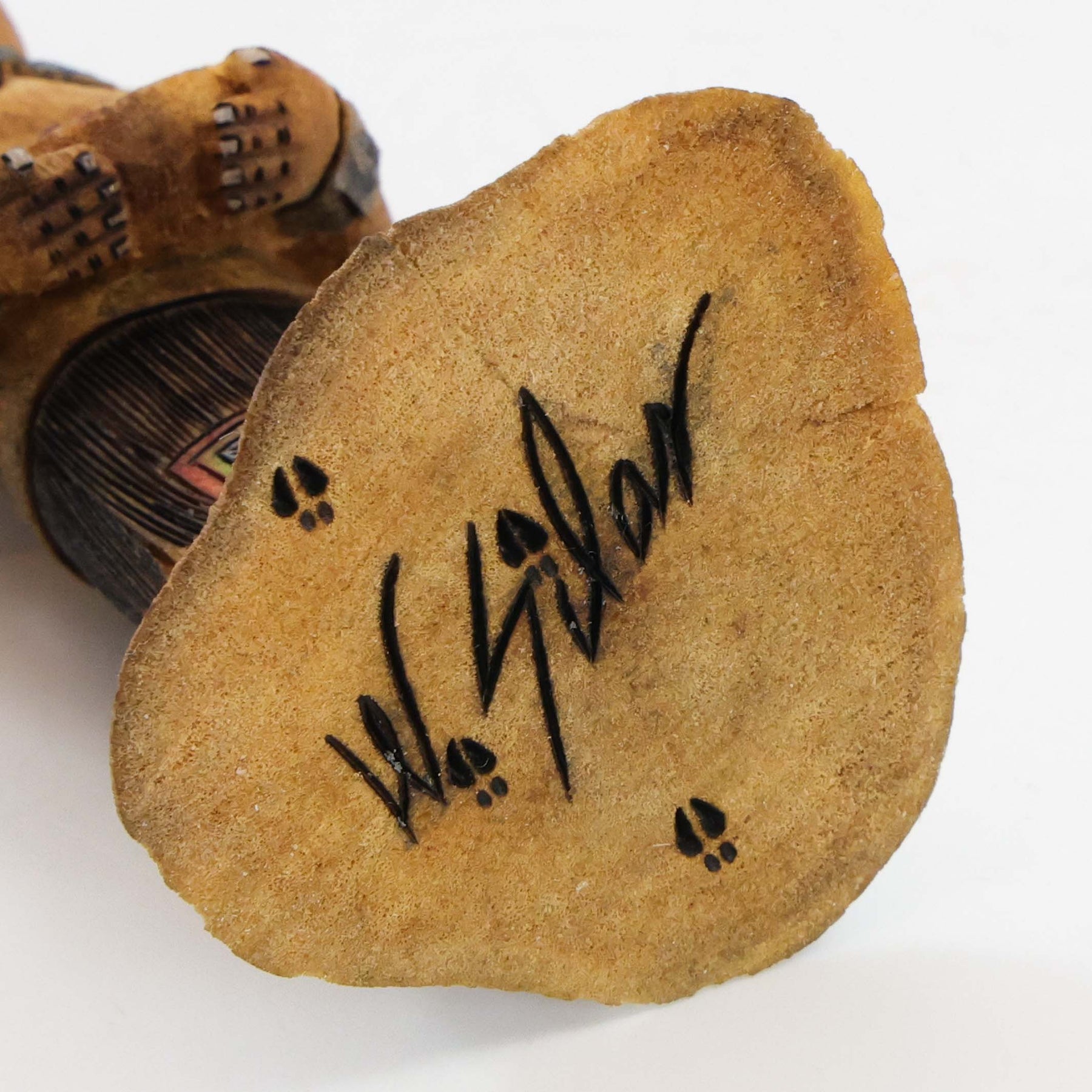Miniature Hand-Carved and Painted Hopi Mudhead (Koyemsi) Kachina Holding a Basket of Corn.