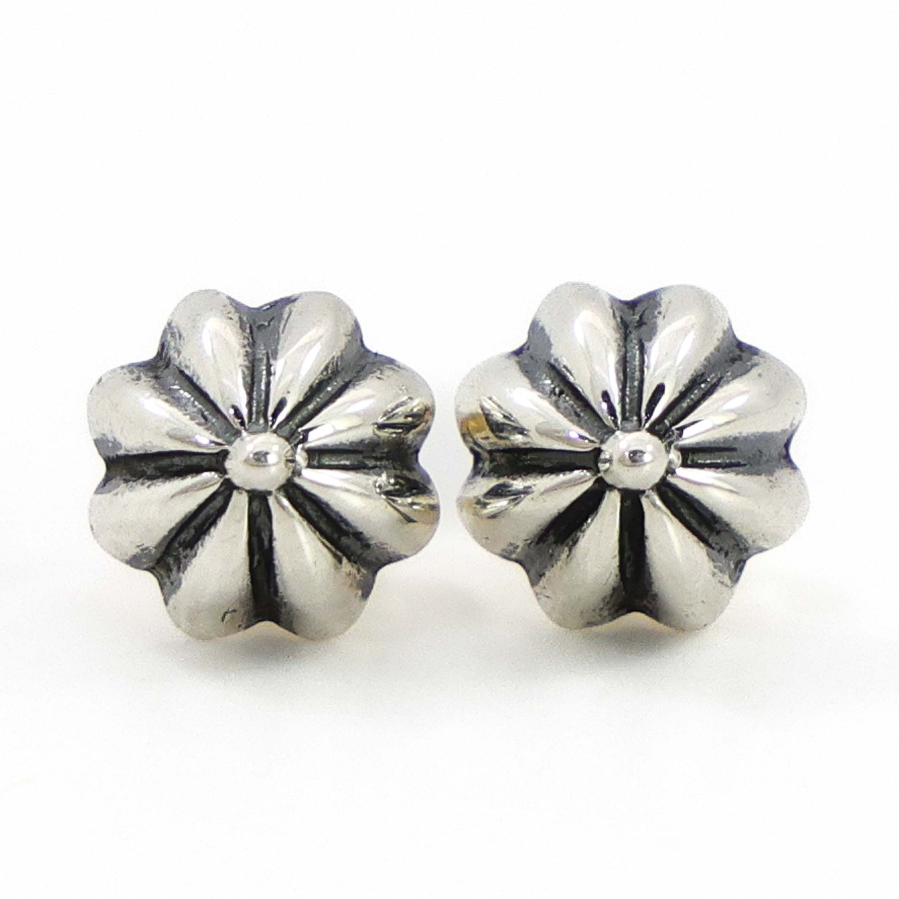 Sterling Silver Post Button Earrings with Fluted Bead Design.