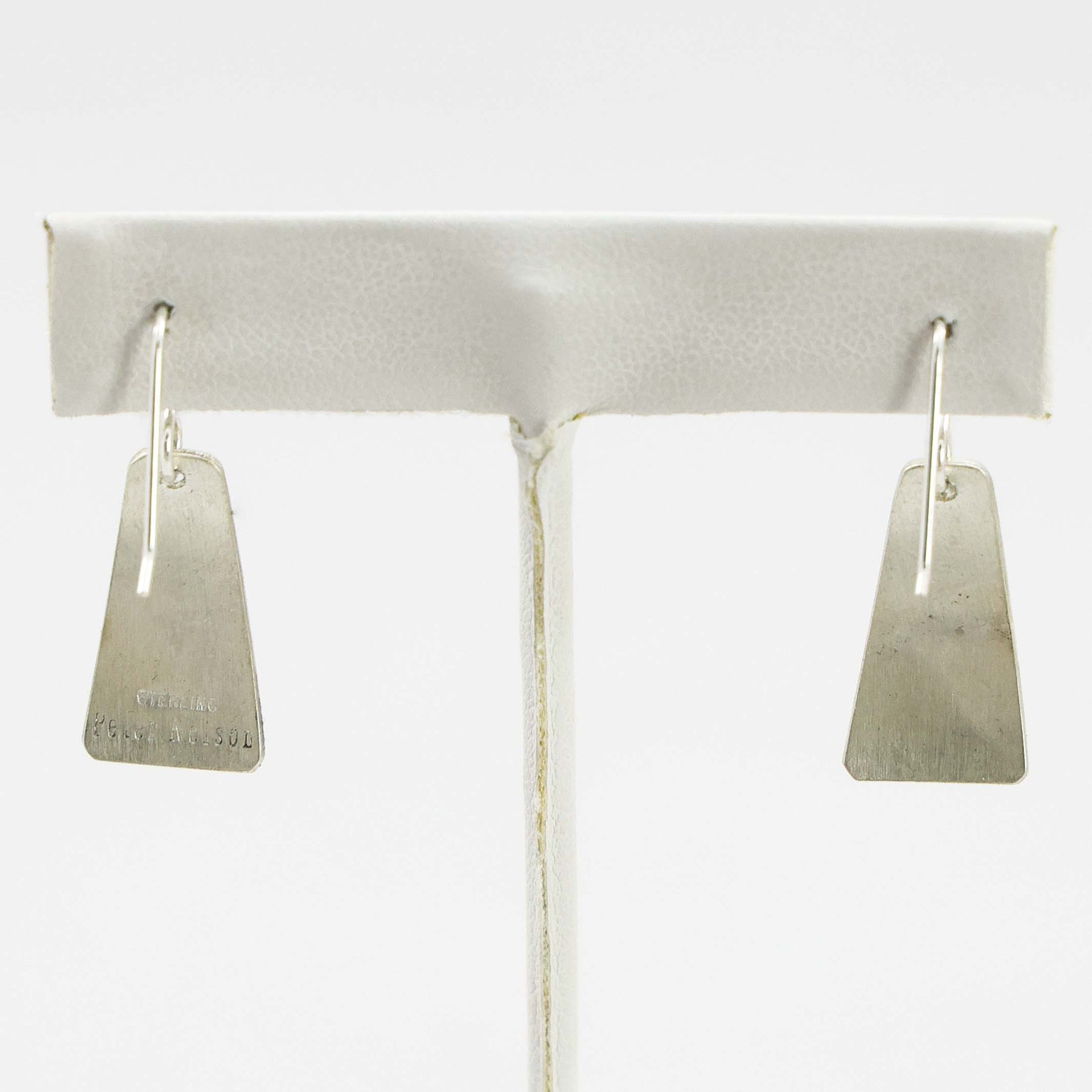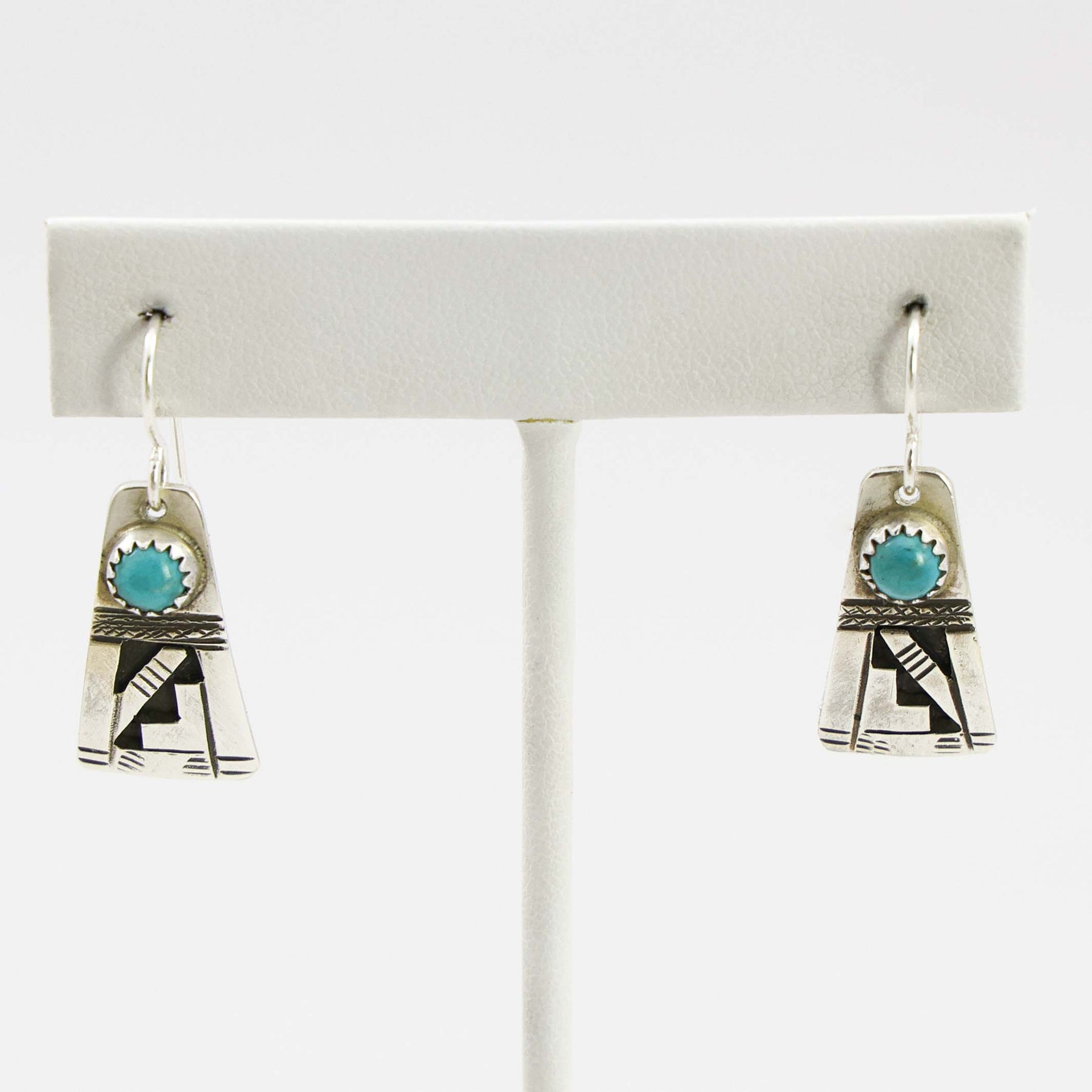 Sterling Silver French Hook Earrings with Overlaid Designs and set with Sleeping Beauty Turquoise from Arizona.