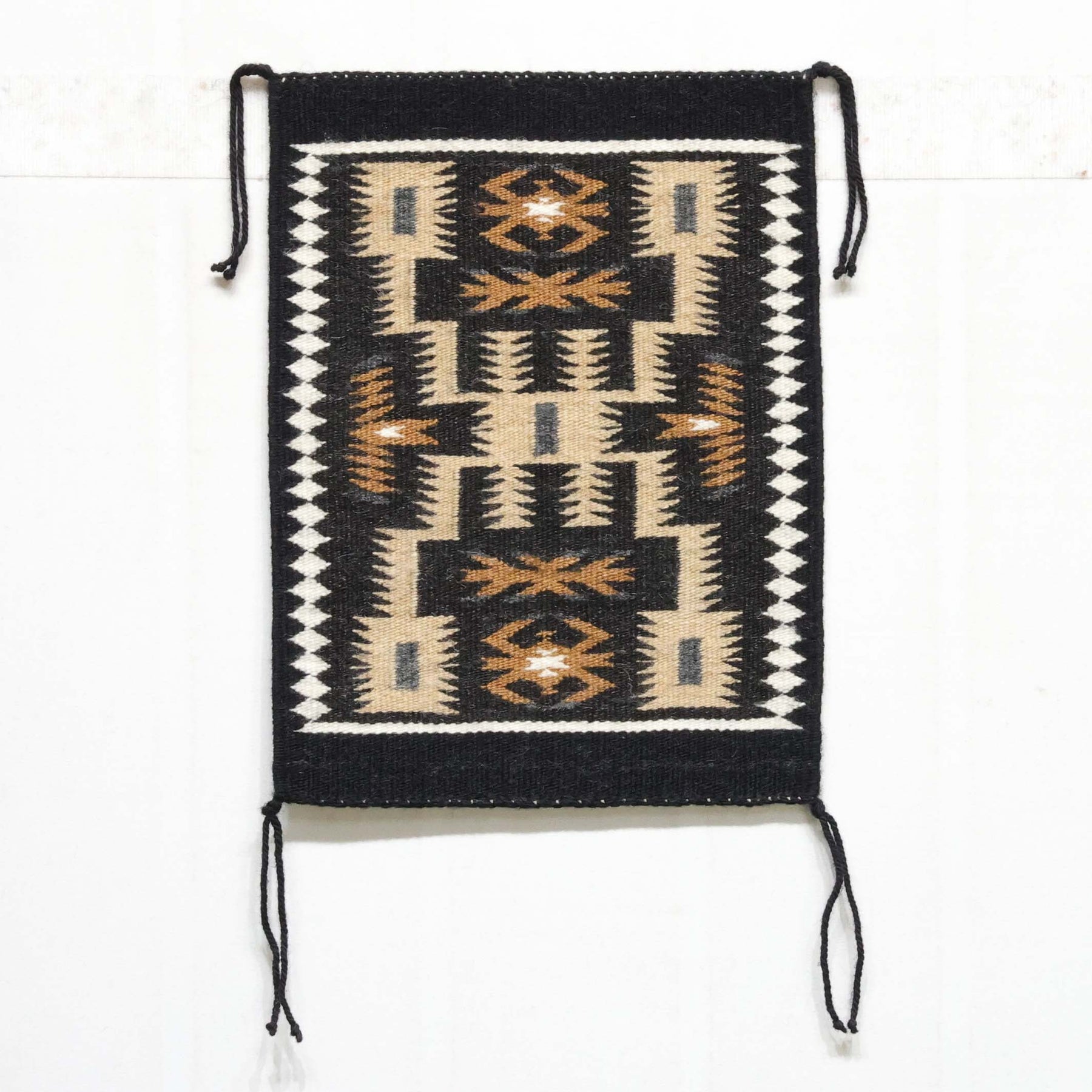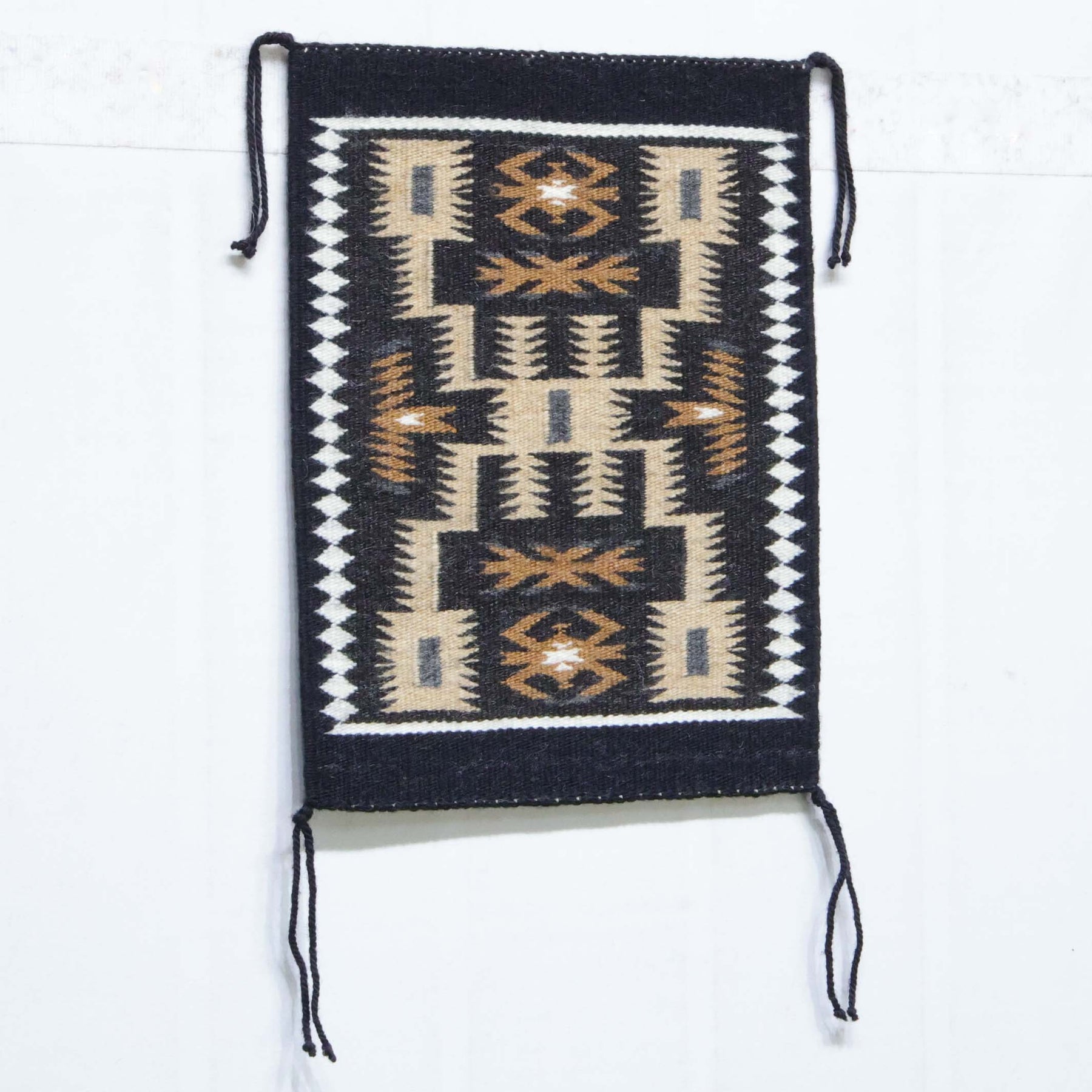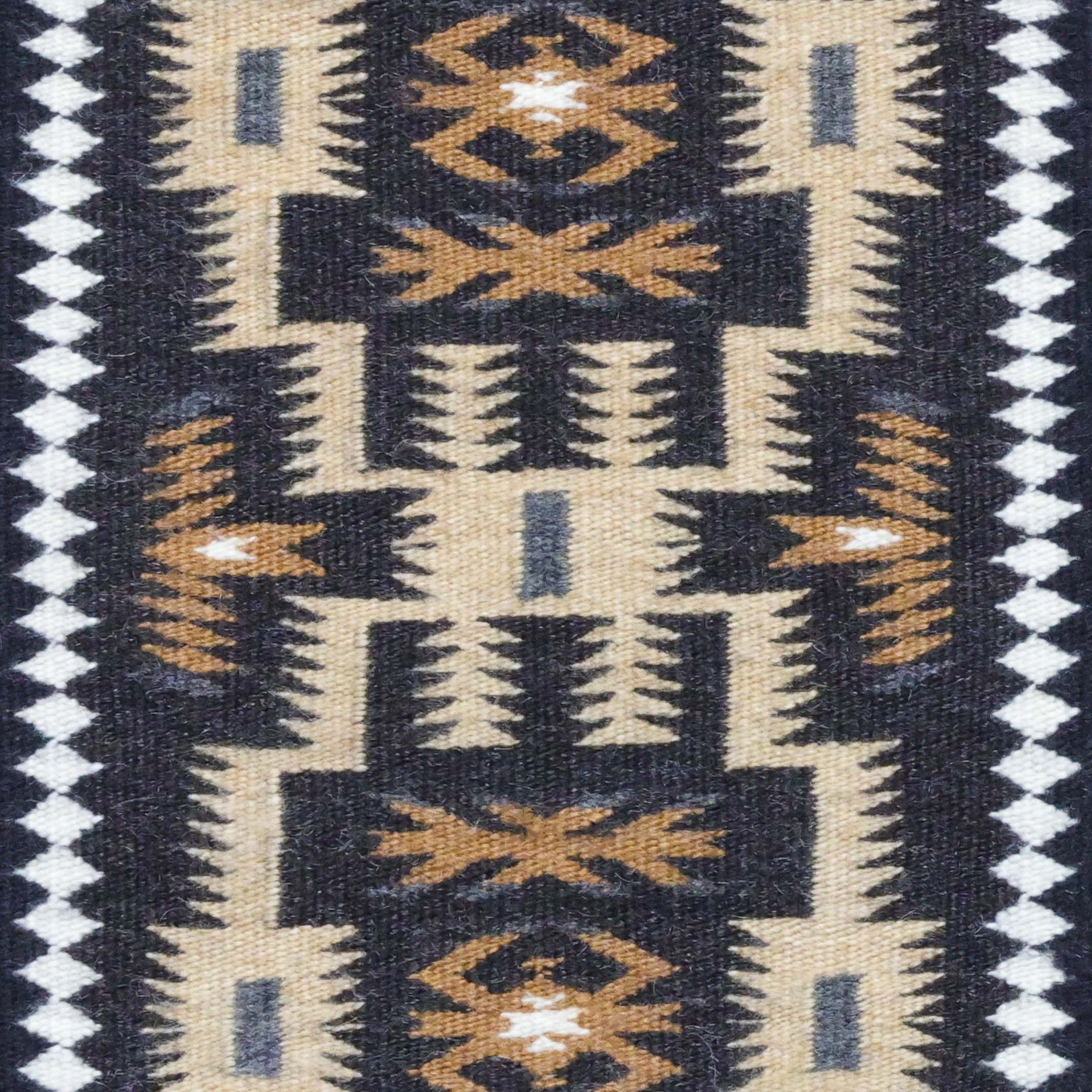 Handwoven Navajo Weaving featuring a Light Brown Storm Pattern Design Element on a Black Background.