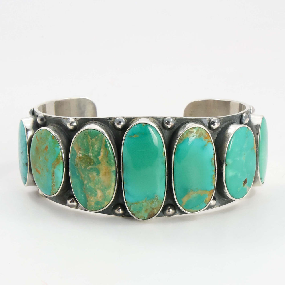Sterling Silver Cuff Bracelet set with Row of Turquoise.