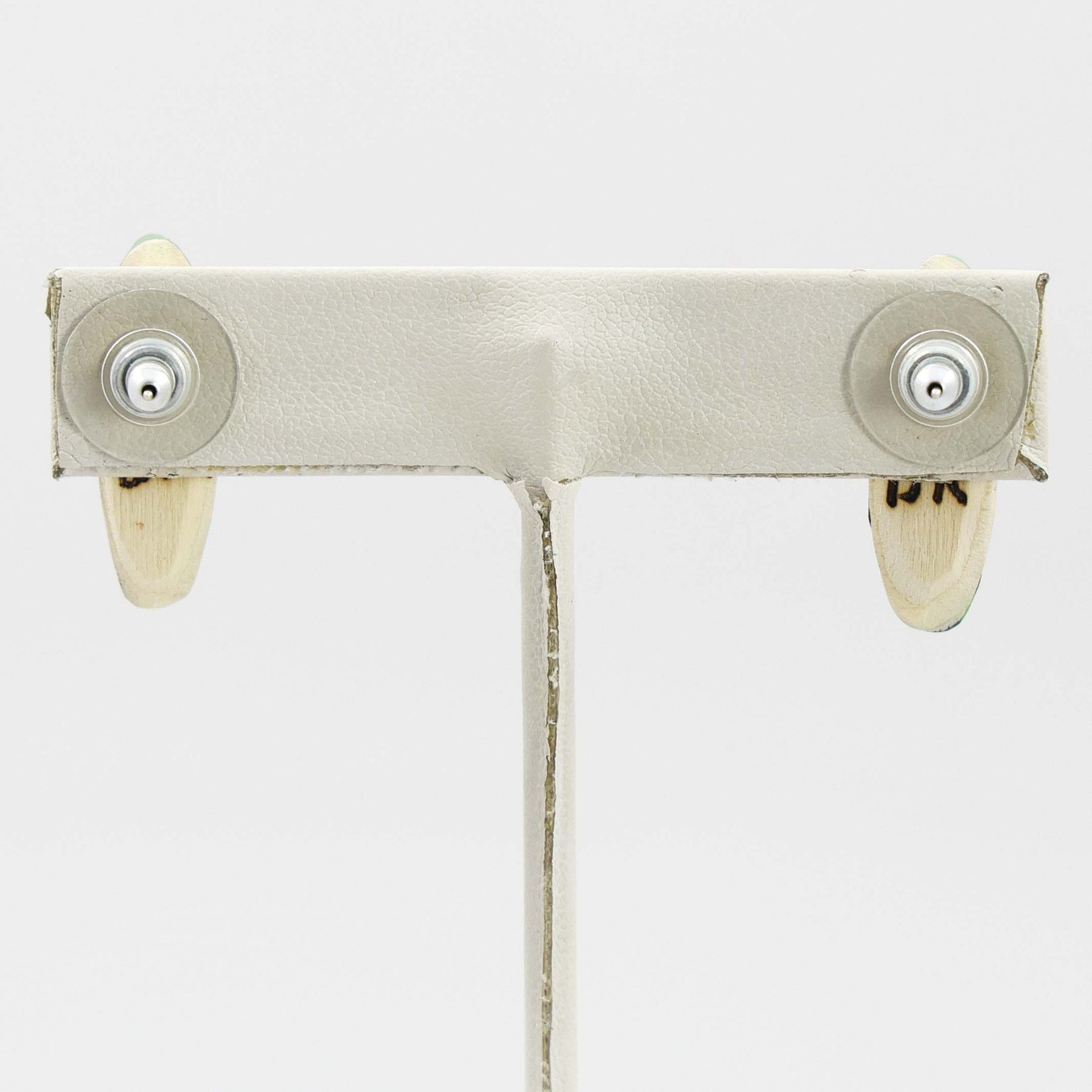 Sterling Silver Post Earrings with Inlaid Stabilized Turquoise Backed on Shell.