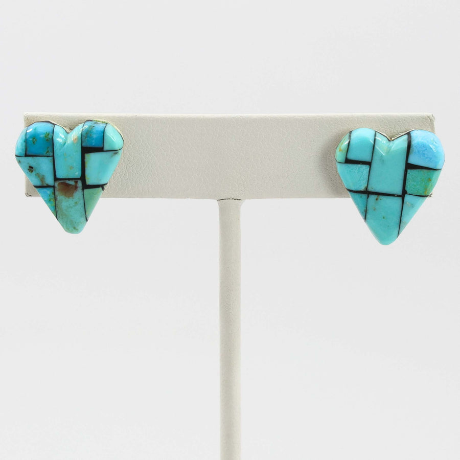 Sterling Silver Post Heart Earrings with Inlaid Turquoise Backed on Shell.