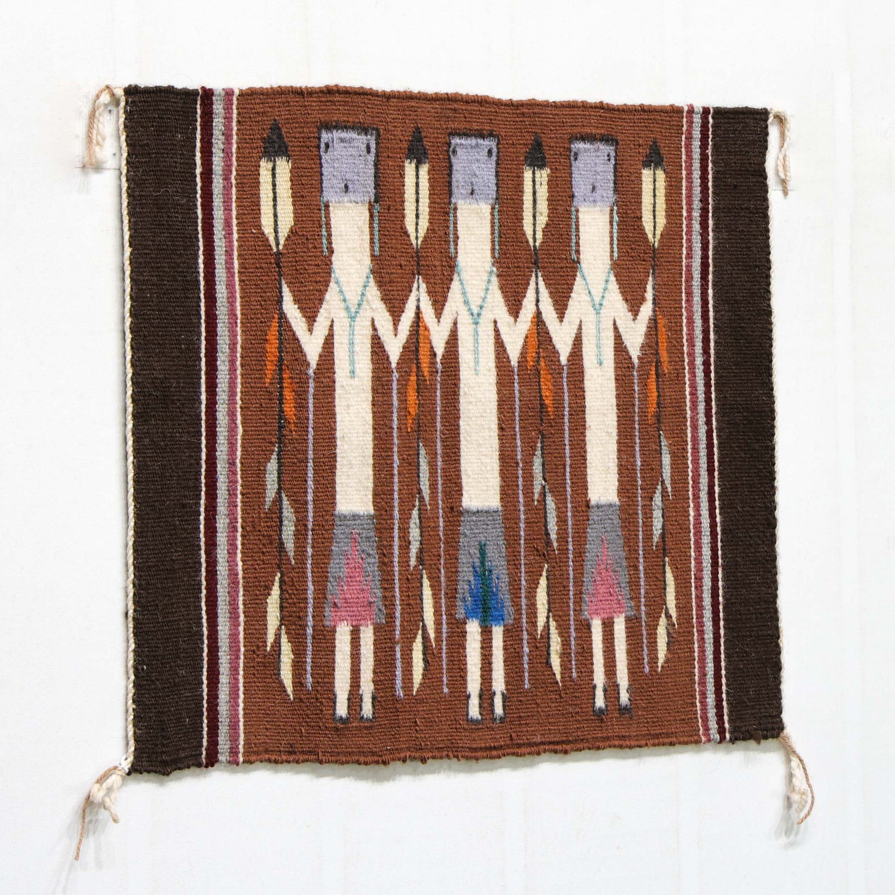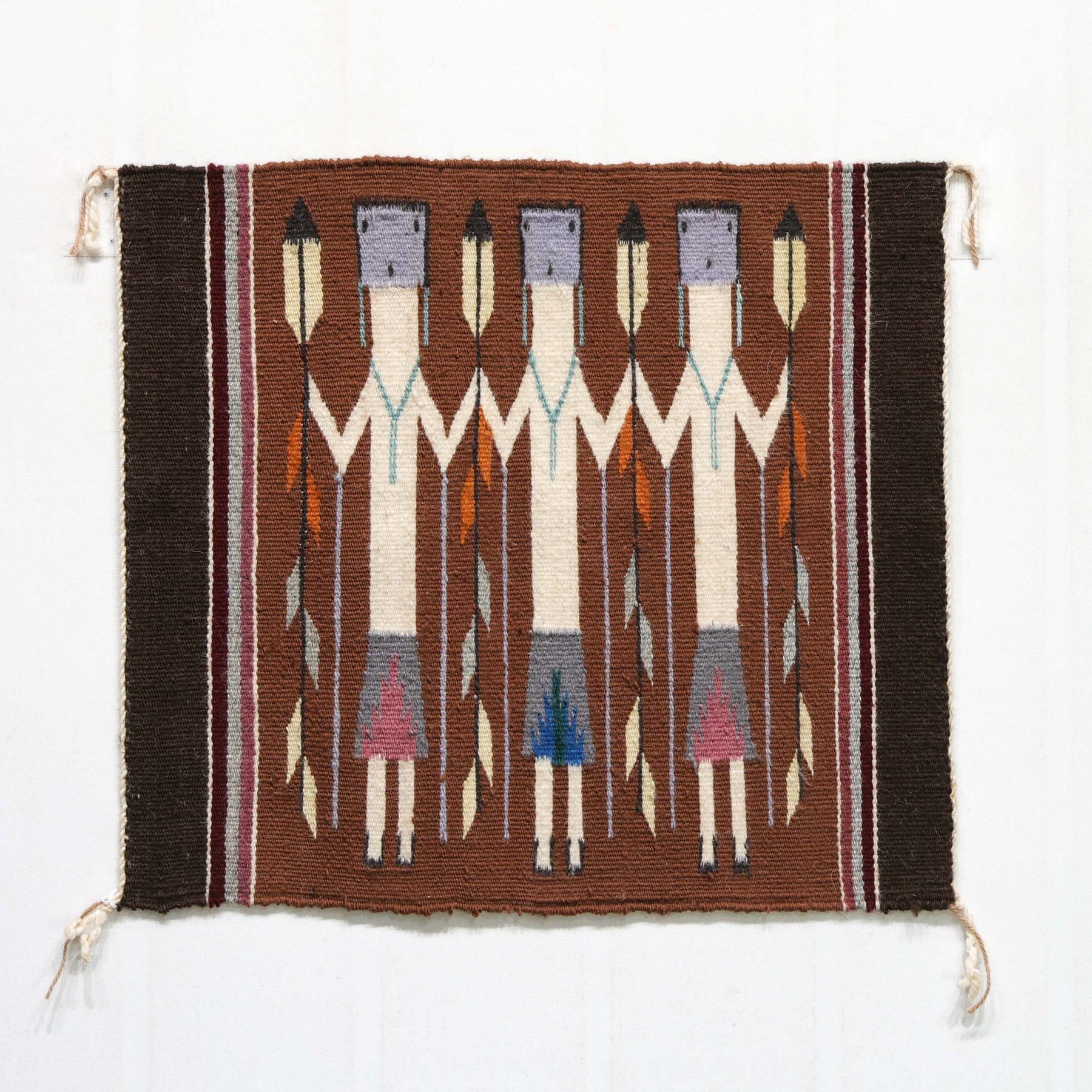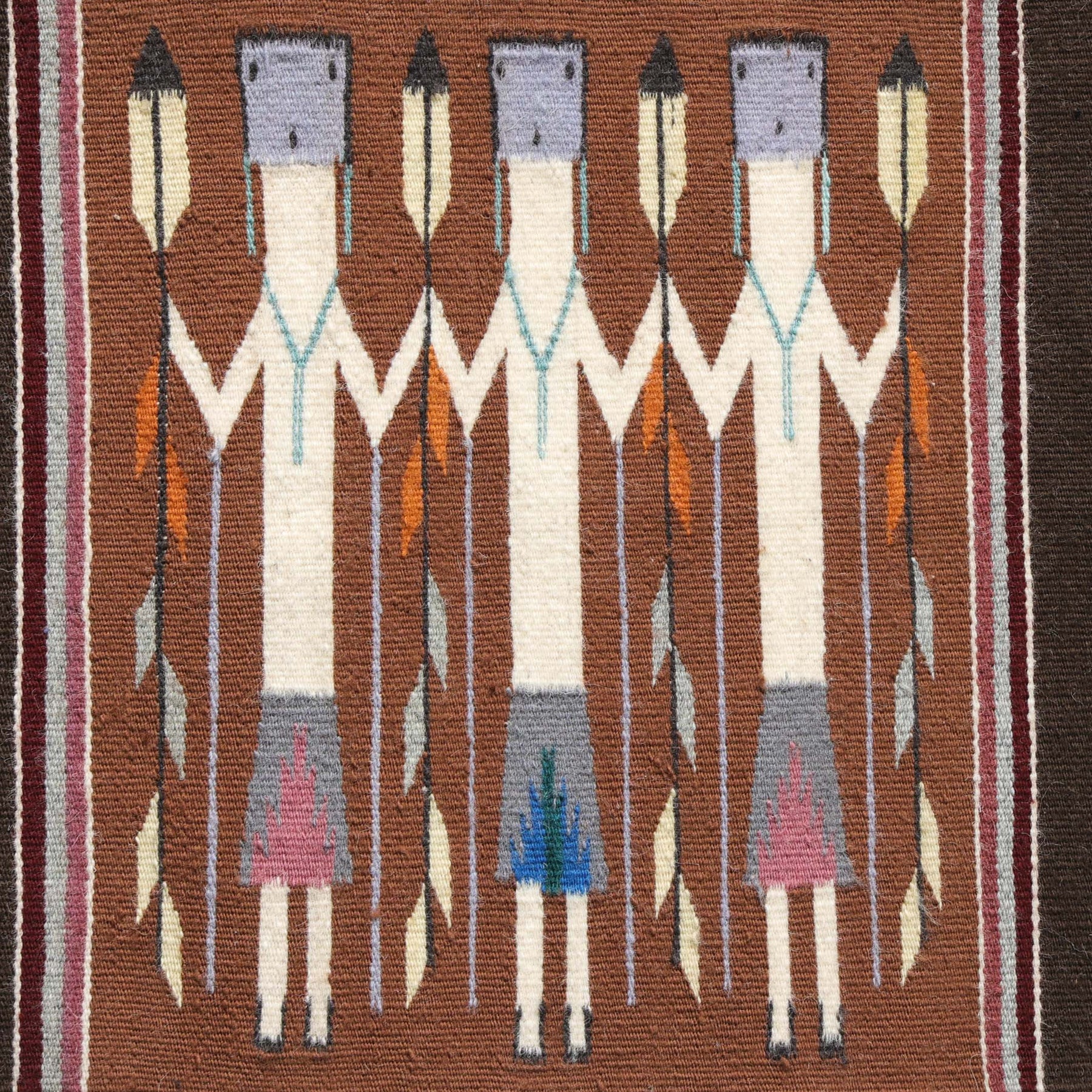 Handwoven Navajo Weaving Depicting Three Yei Figures.