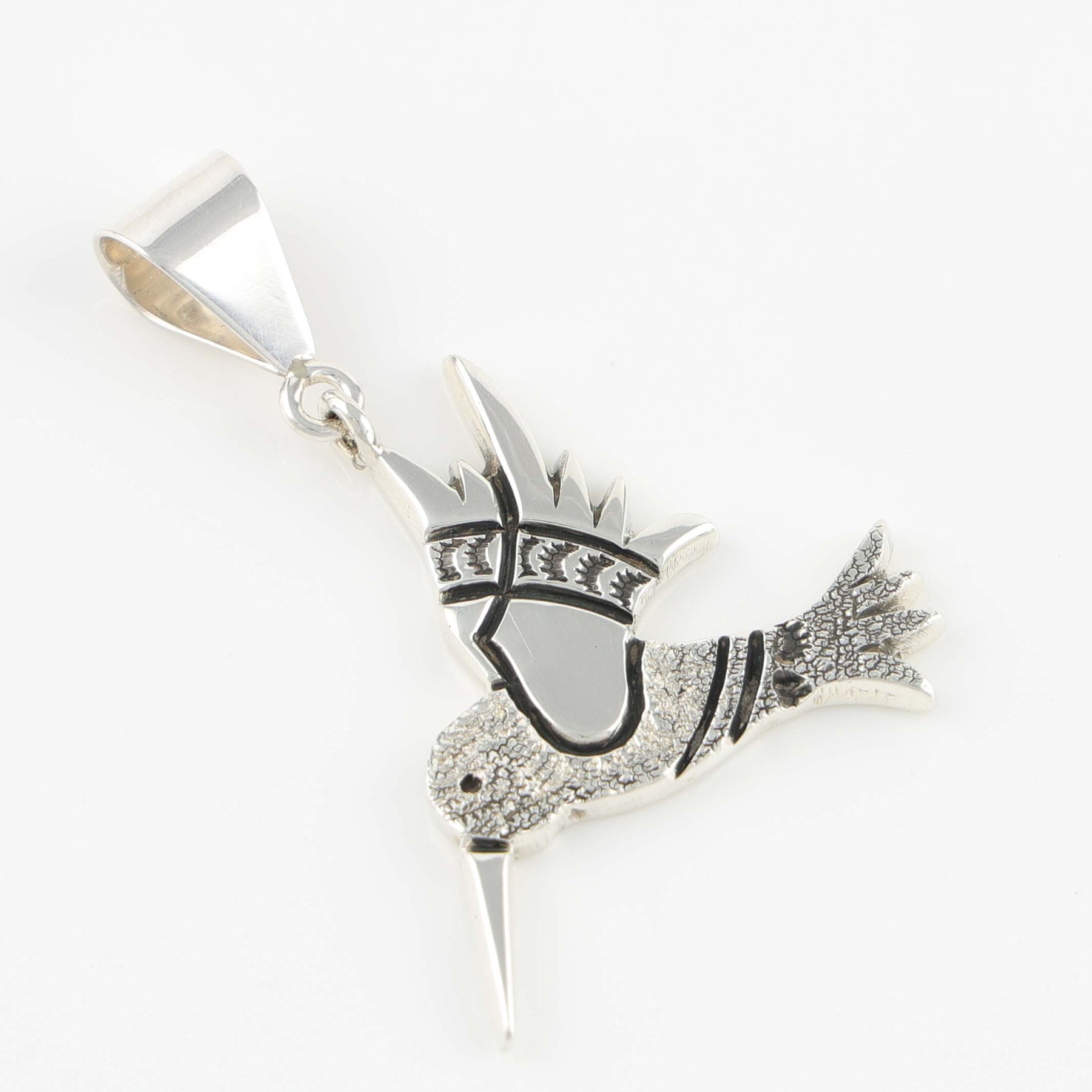 Sterling Silver Hummingbird Pendant with Hand-Stamped Designs.