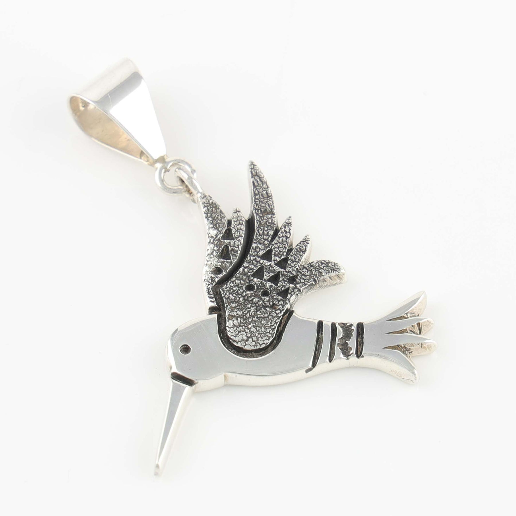 Sterling Silver Hummingbird Pendant with Hand-Stamped Designs.