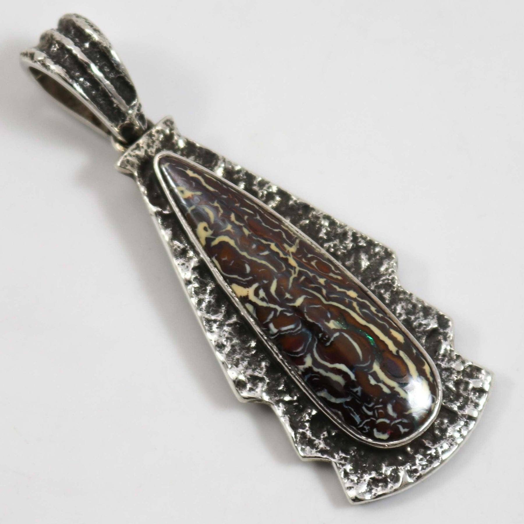 Cast Sterling Silver Pendant set with Natural Boulder Opal from the Karoit Opal Field in Australia.