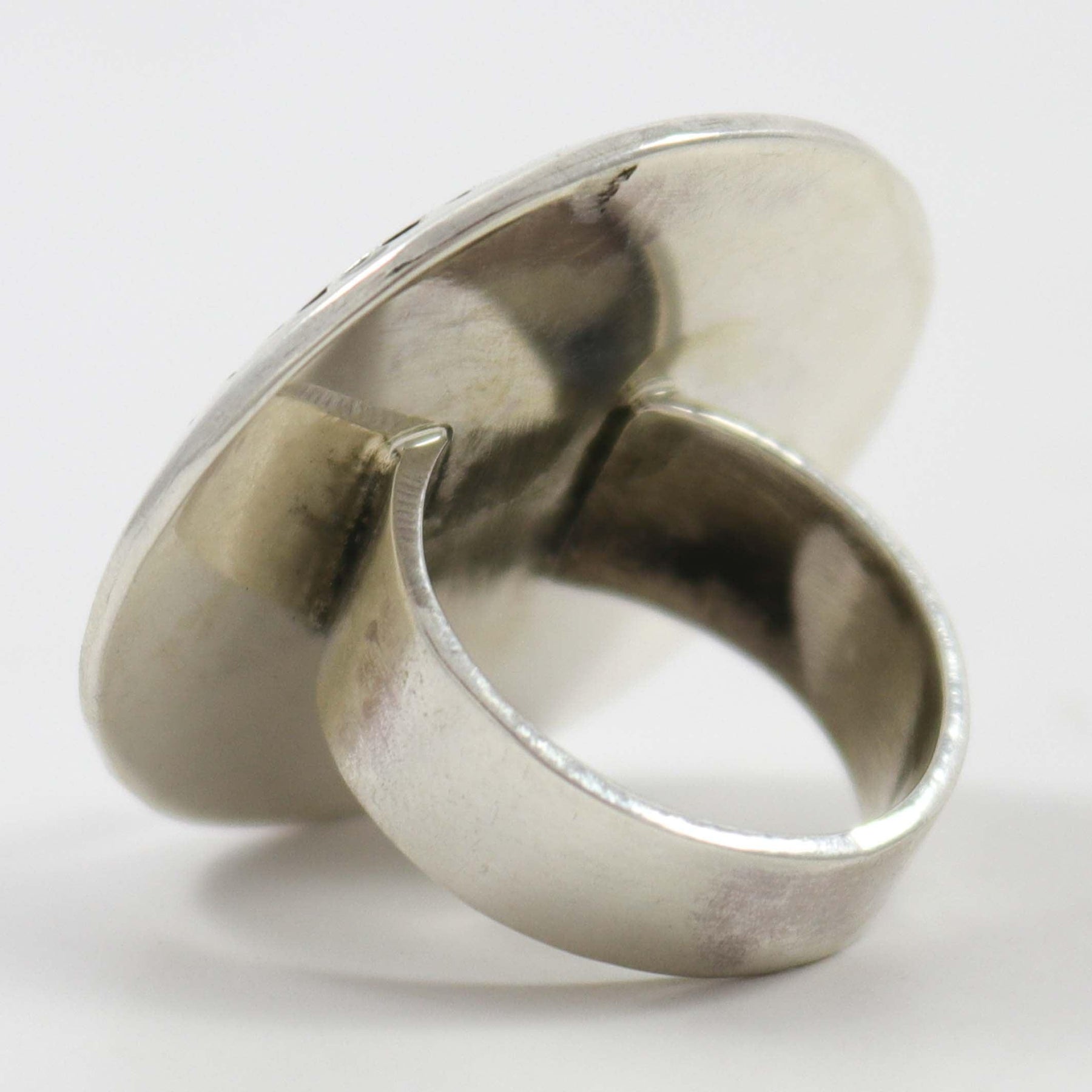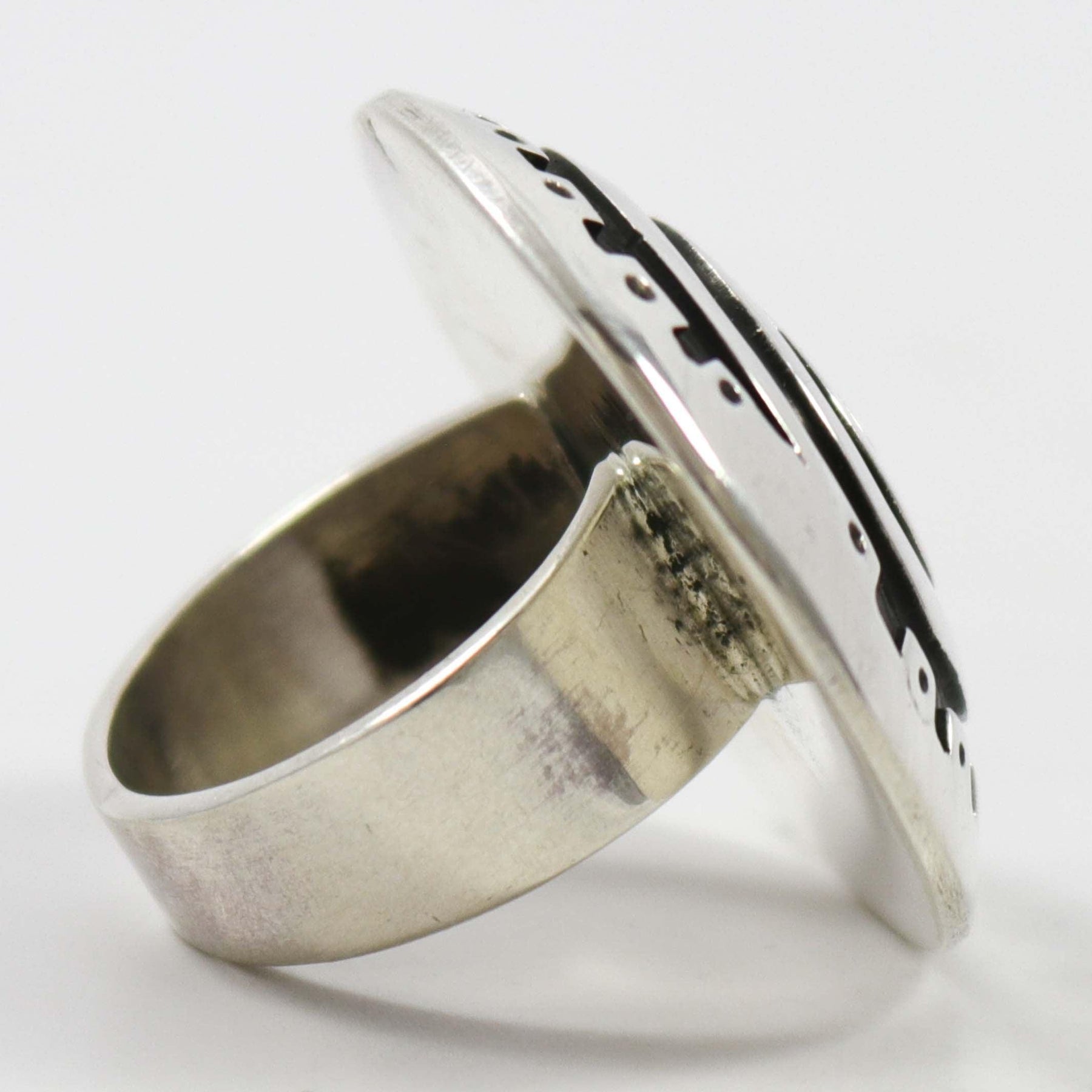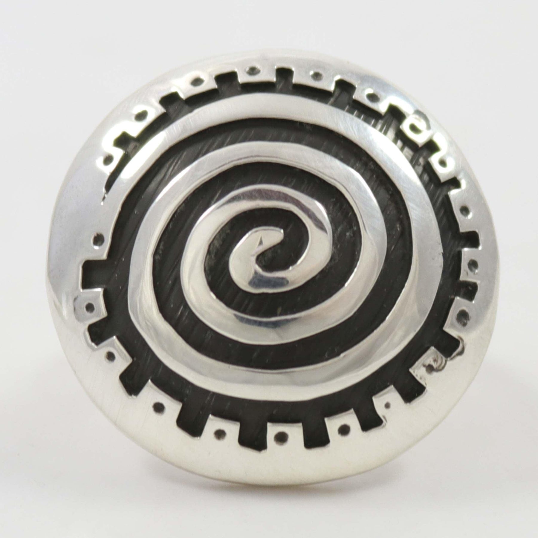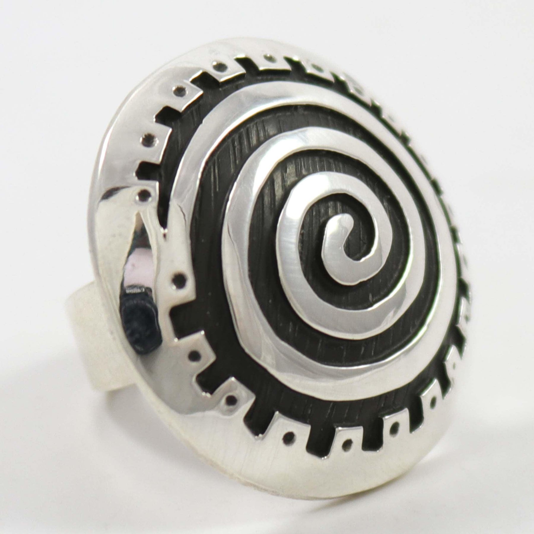 Sterling Silver Ring with Overlaid Migration Swirl Design.