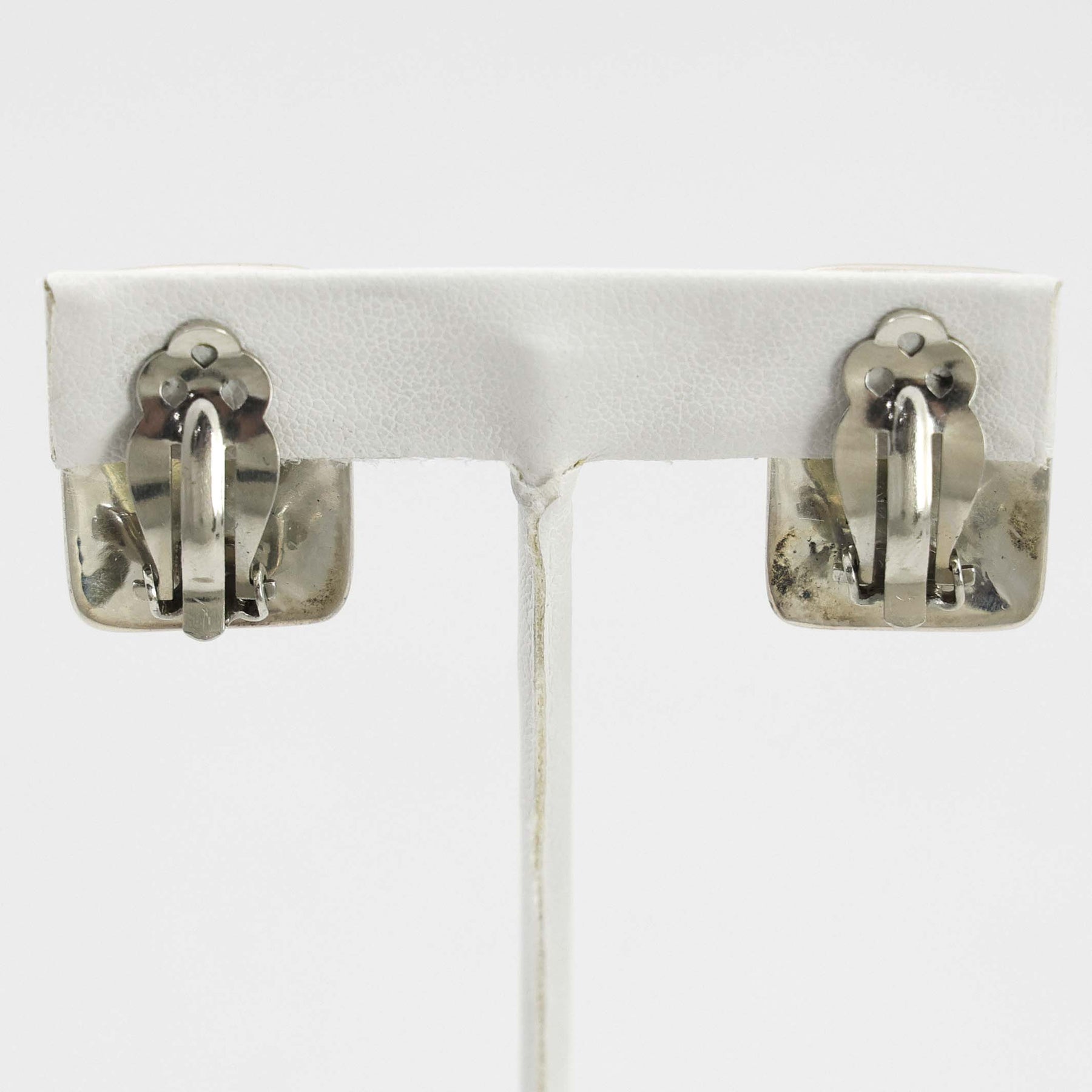 Sterling Silver Clip Earrings with Hopi Overlaid Trickling Water Designs.