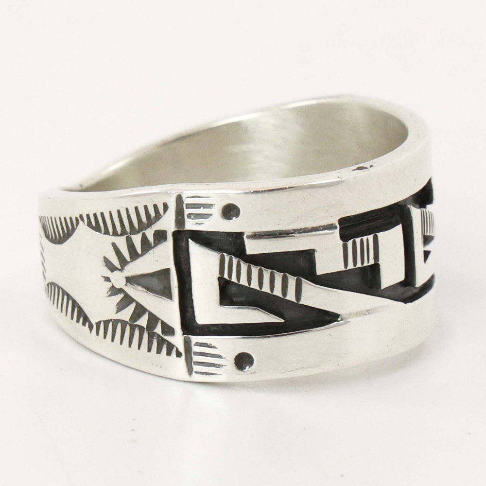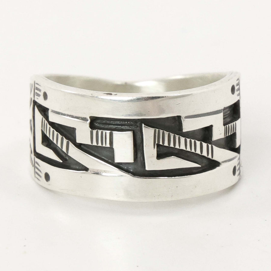 Overlay describes a piece of silver with a design cut out of it – a negative design – laid over a second piece of silver or gold and soldered together. First, the artist carefully cuts a design out of silver, and keeps the part that is leftover. The designs must be carefully sawed out, making this the most painstaking and intricate step in the whole process. This piece of silver is then soldered onto a sheet of plain silver and the inside of the design (the cutout area) is oxidized to show up black beneath the polished silver layer.