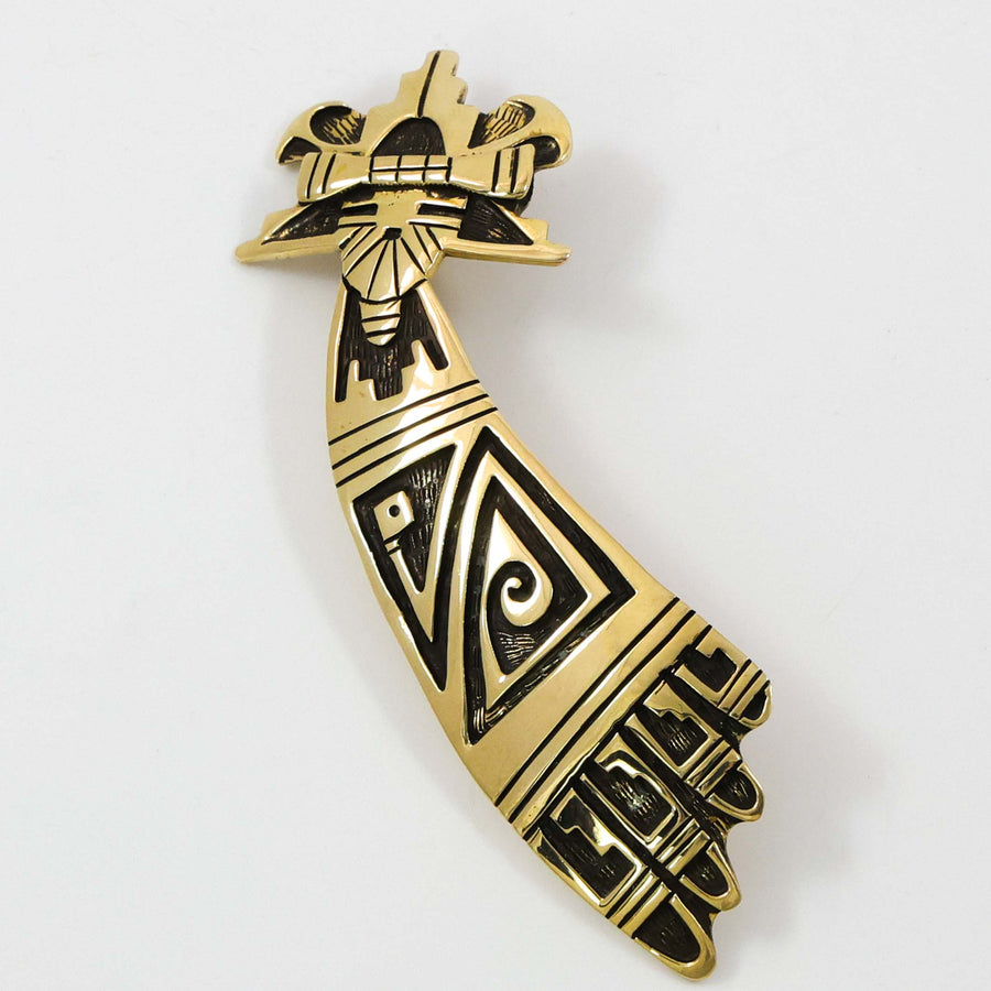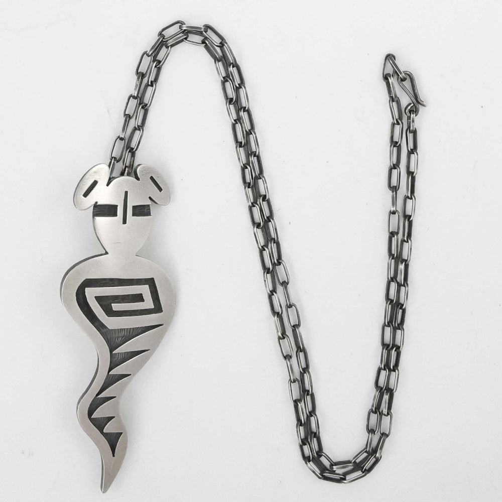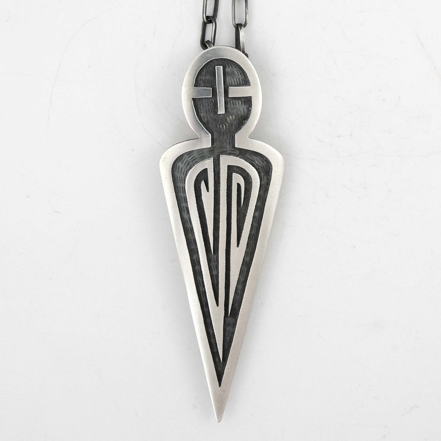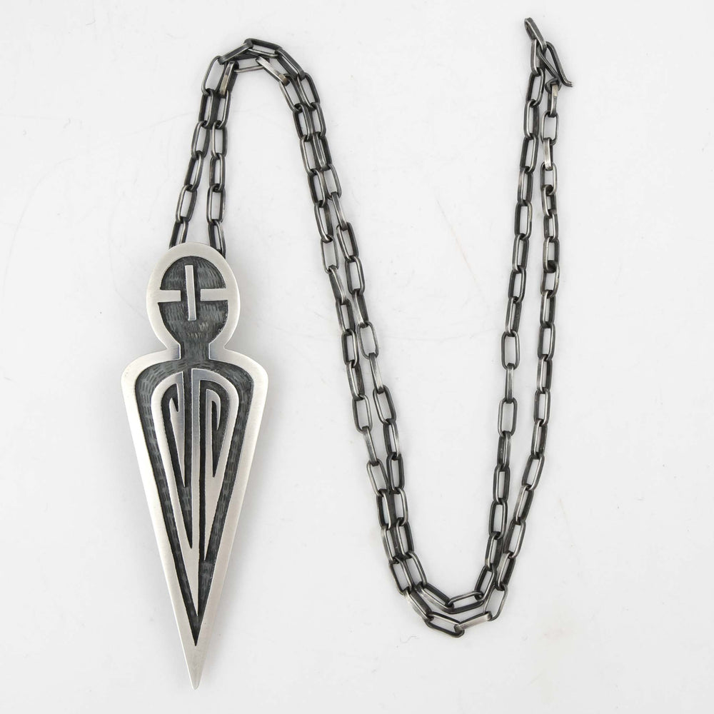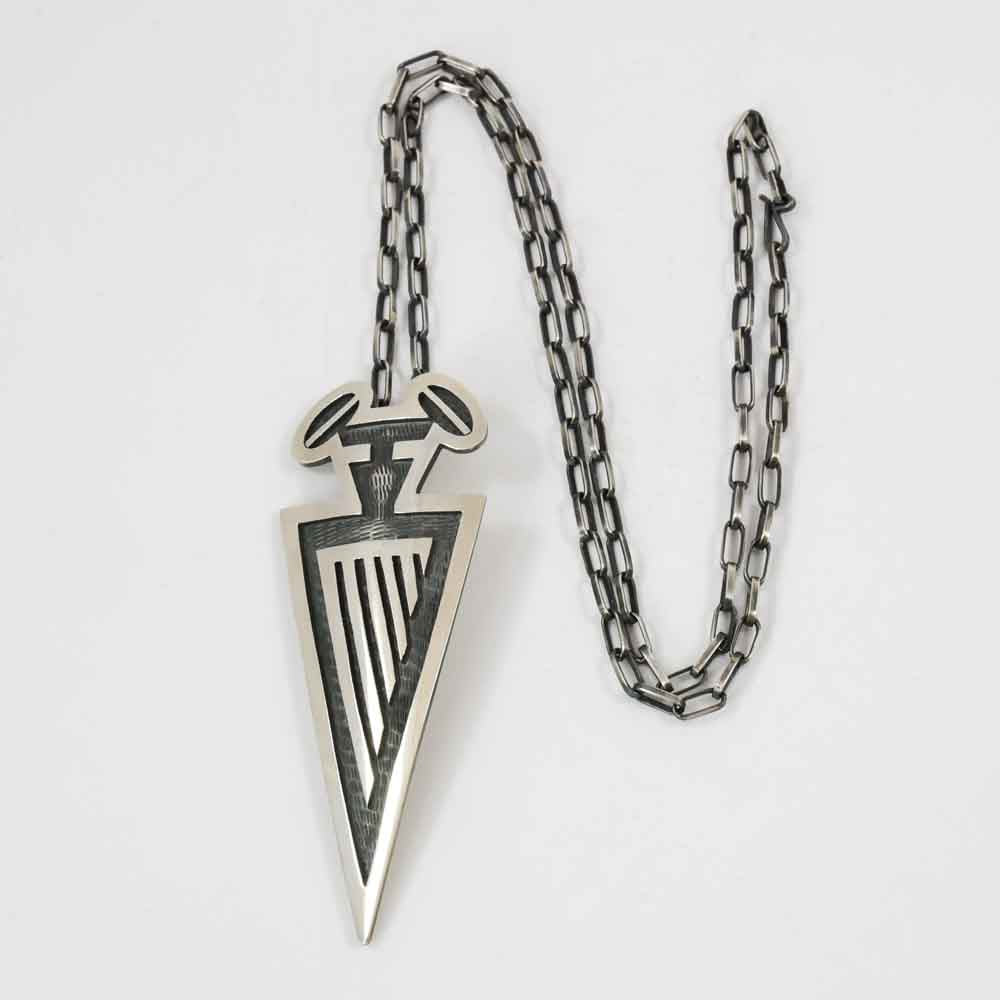 Buttons and pins were traditionally used to decorate clothing in the Southwest. Early buttons were made from coins that were hammered into silver discs and stamped with designs. Pins were soldered onto the buttons so they could fasten to fabric. Later, bales were added to allow the pendant to be looped on beads or a leather cord necklace. An iconic look to this day amongst Navajo (Diné) women is to wear large turquoise pins on colorful velvet blouses.