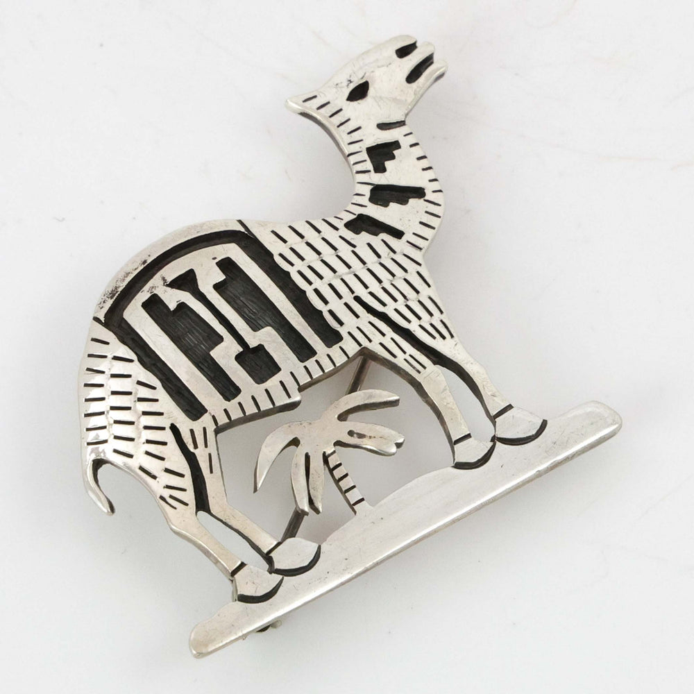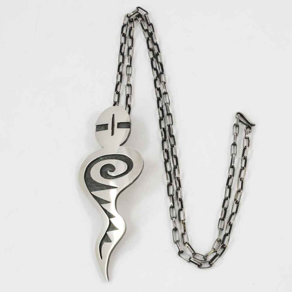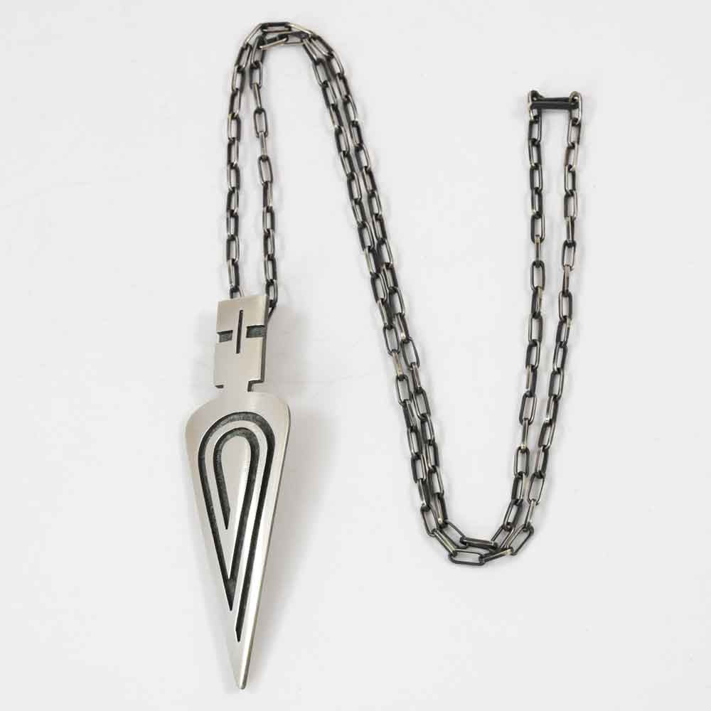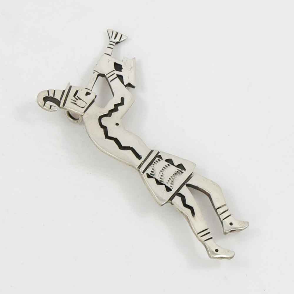 Buttons and pins were traditionally used to decorate clothing in the Southwest. Early buttons were made from coins that were hammered into silver discs and stamped with designs. Pins were soldered onto the buttons so they could fasten to fabric. Later, bales were added to allow the pendant to be looped on beads or a leather cord necklace. An iconic look to this day amongst Navajo (Diné) women is to wear large turquoise pins on colorful velvet blouses.