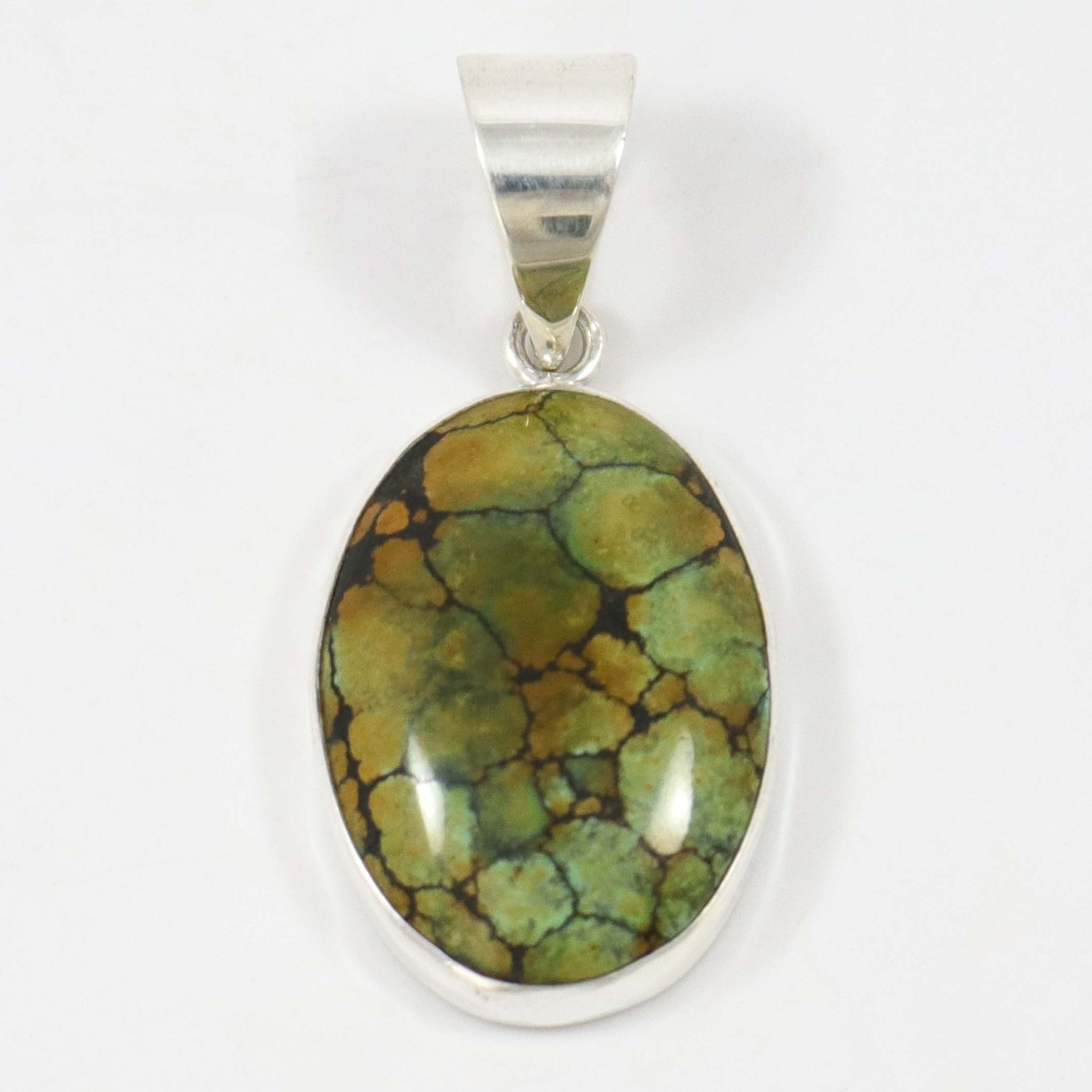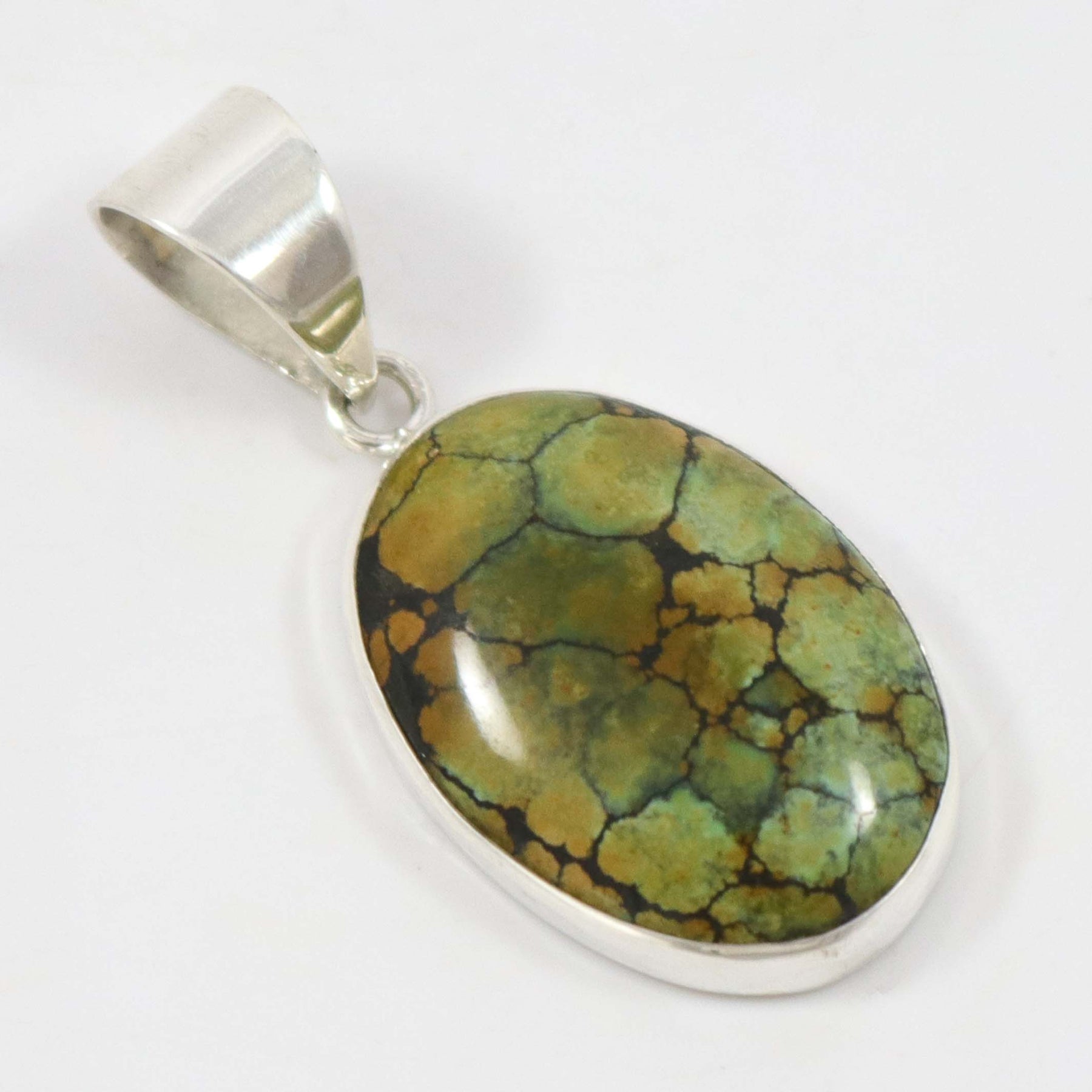 Sterling Silver Pendant set with Natural Hubei Turquoise from China.