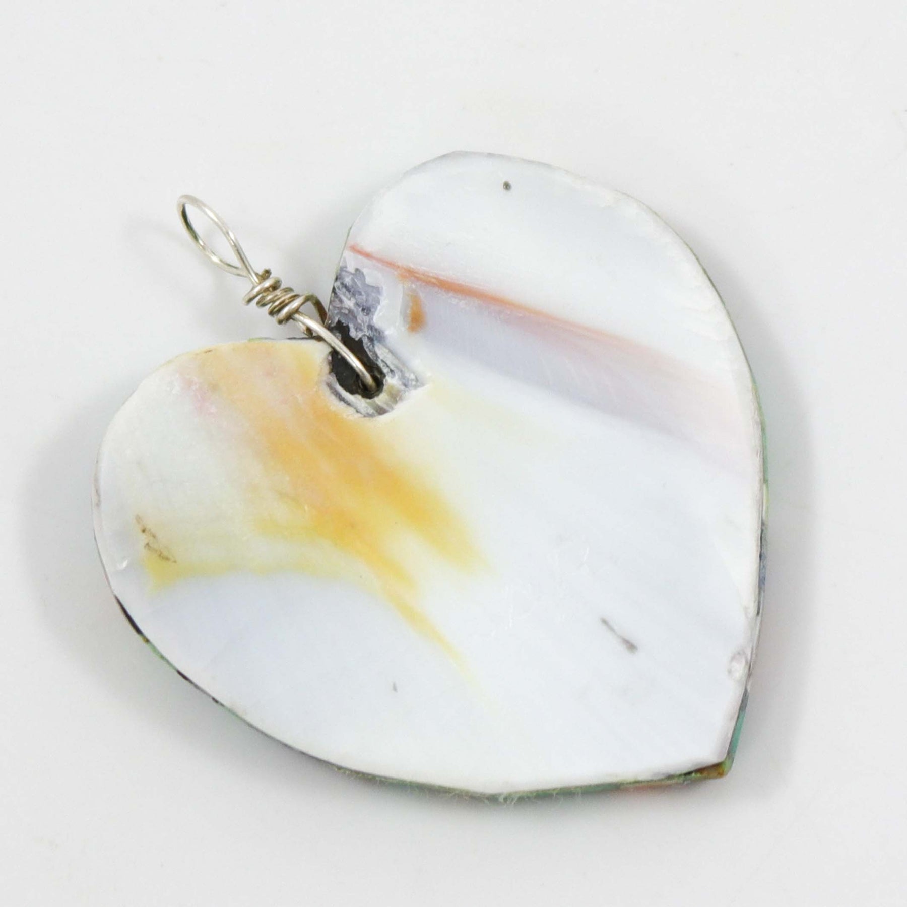 Shell Heart Pendant with Inlaid Turquoise, Lapis, Spiny Oyster Shell, and Mother of Pearl Shell.