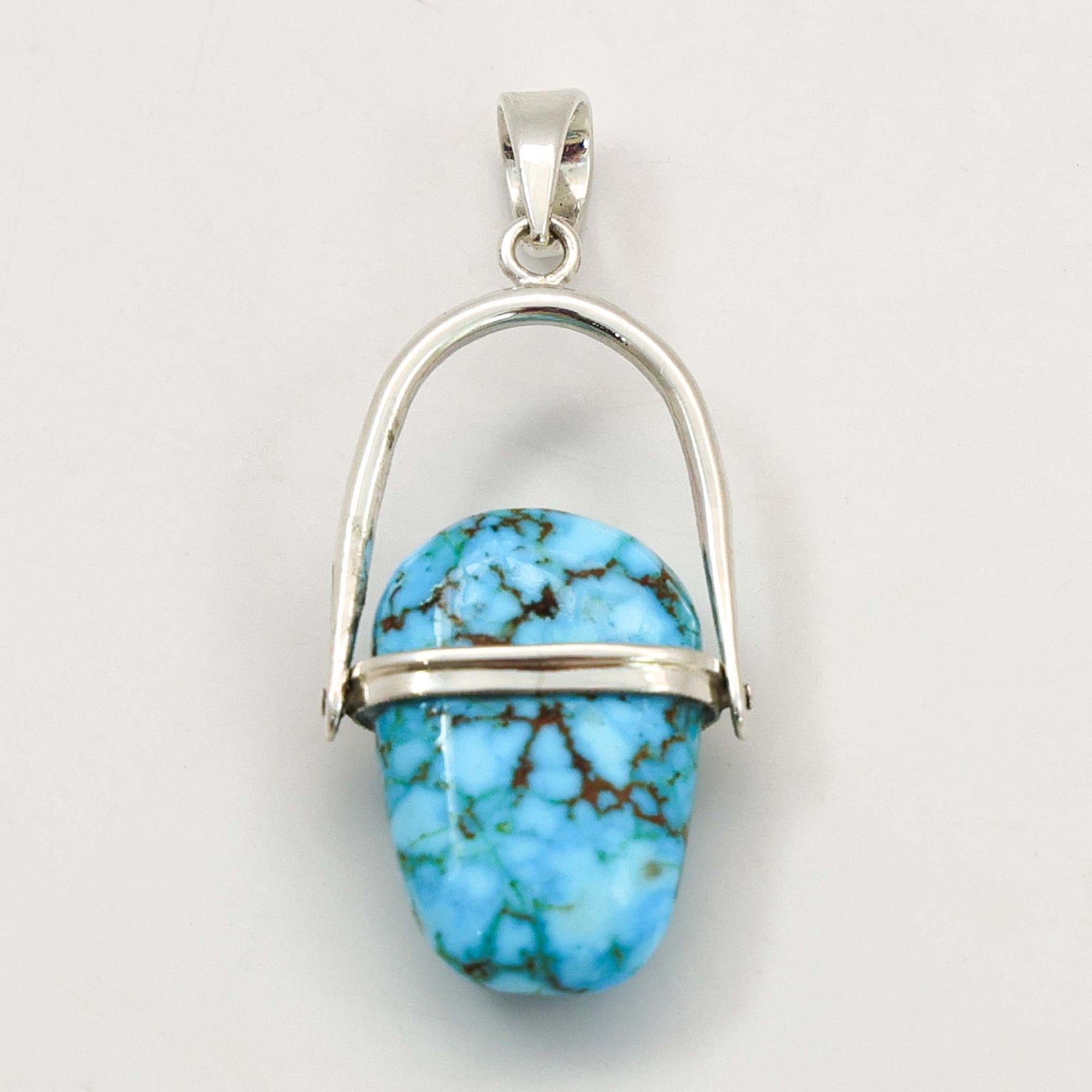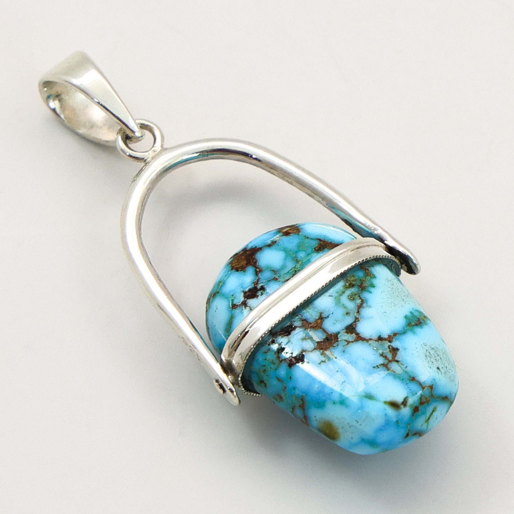 Sterling Silver Pendant with a Hand-Cut and Polished Natural Ithaca Peak Turquoise Stone from Arizona. The stone is set in a hinged collar so that the stone can swivel up and down.