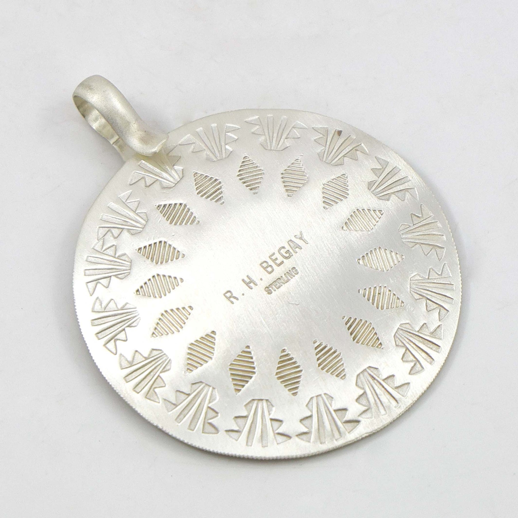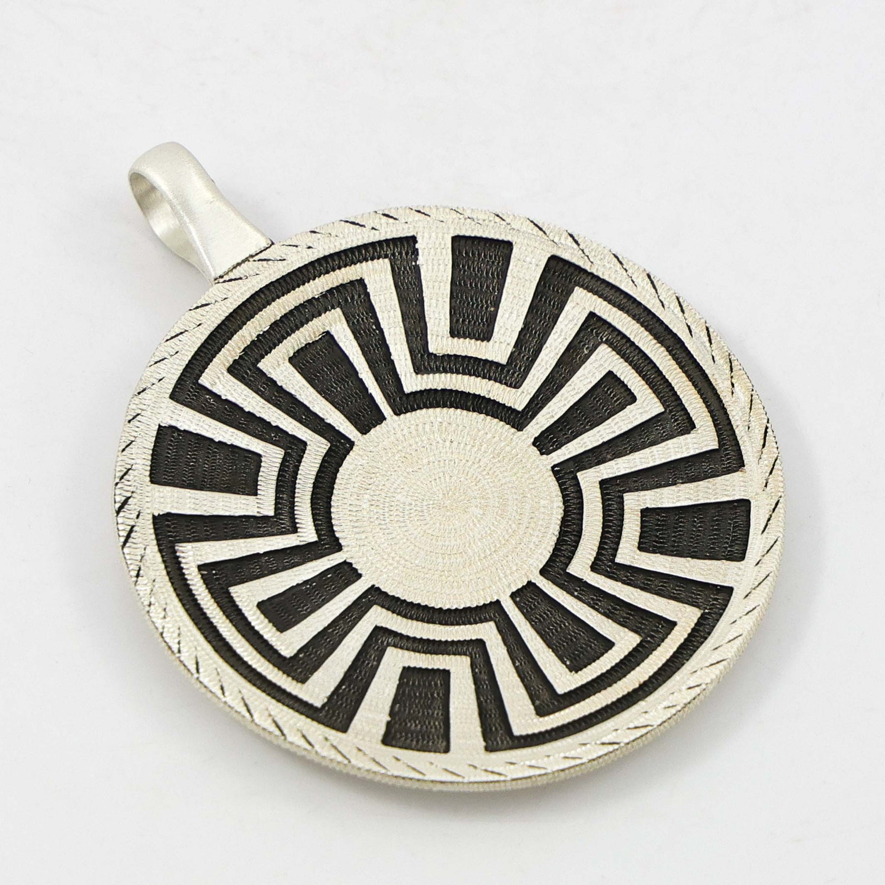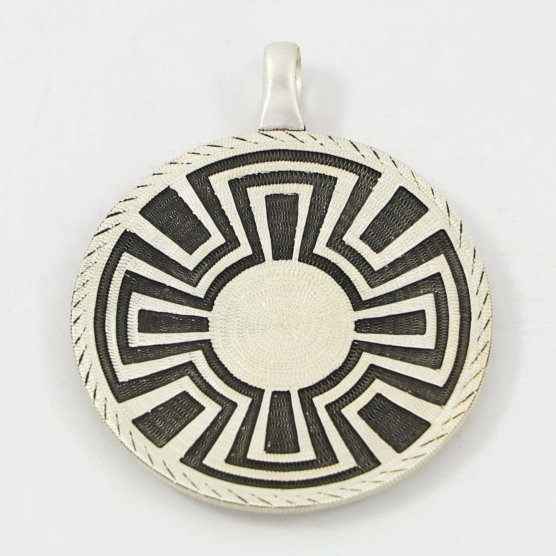 Sterling Silver Pendant with Hand-Stamped and Overlaid Tohono O’odham Squash Blossom Basket Designs.