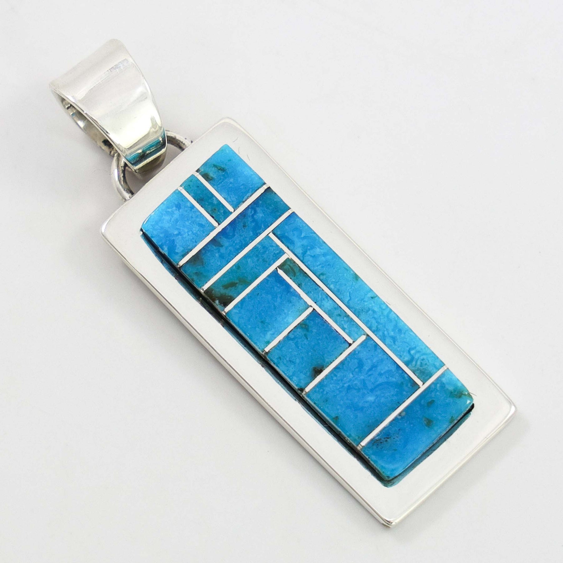 Sterling Silver Pendant with Channel Inlaid Stabilized Kingman Turquoise from Arizona.