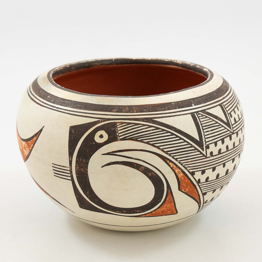 Pueblo pottery dates back as far as 150 CE and was entirely utilitarian. The arrival of railroads and tourists caused the emergence of pottery as art. Not only is pottery beautiful to look at, but it is also very remarkable that the pottery artists of today make their pots in the same manner that their ancestors did hundreds or thousands of years ago.