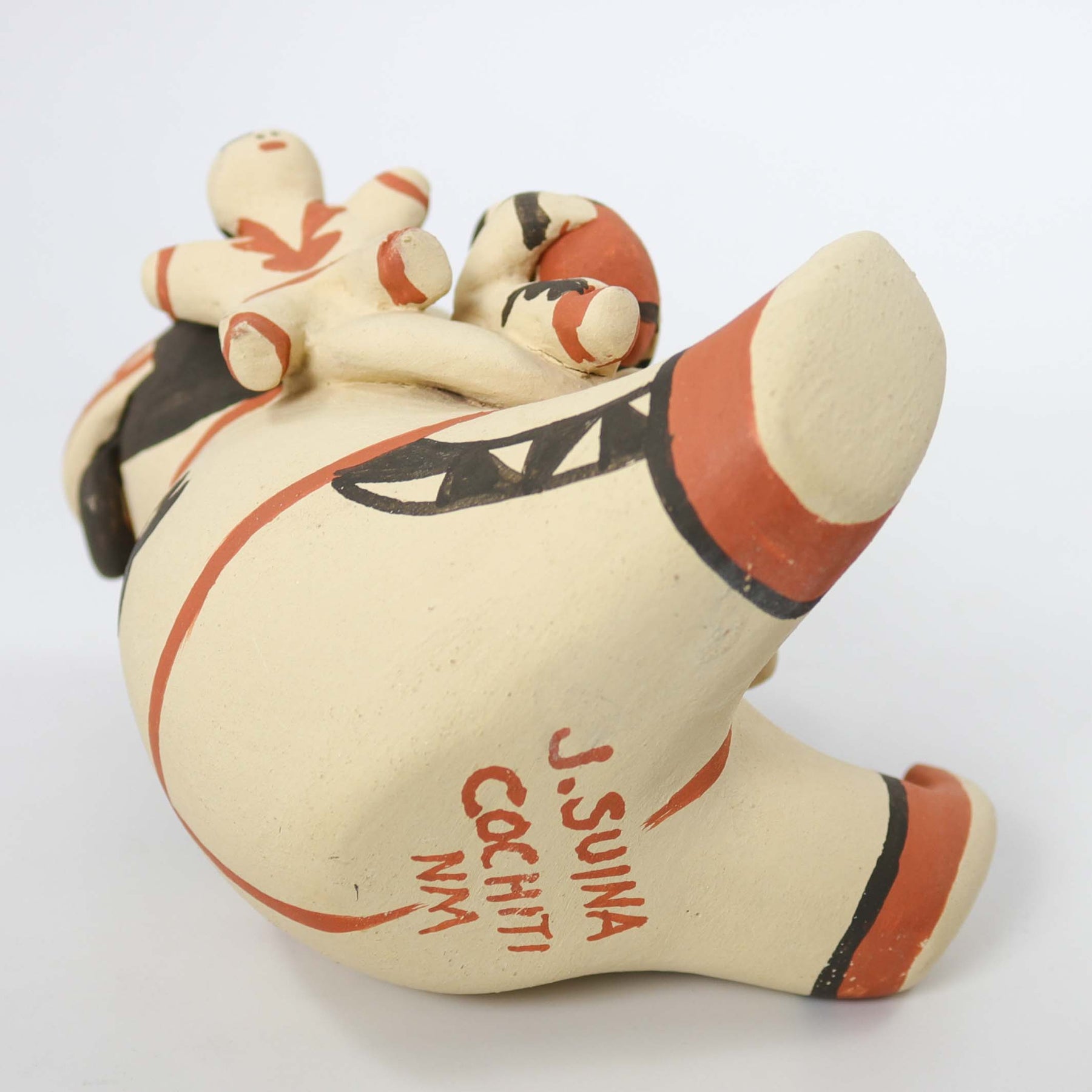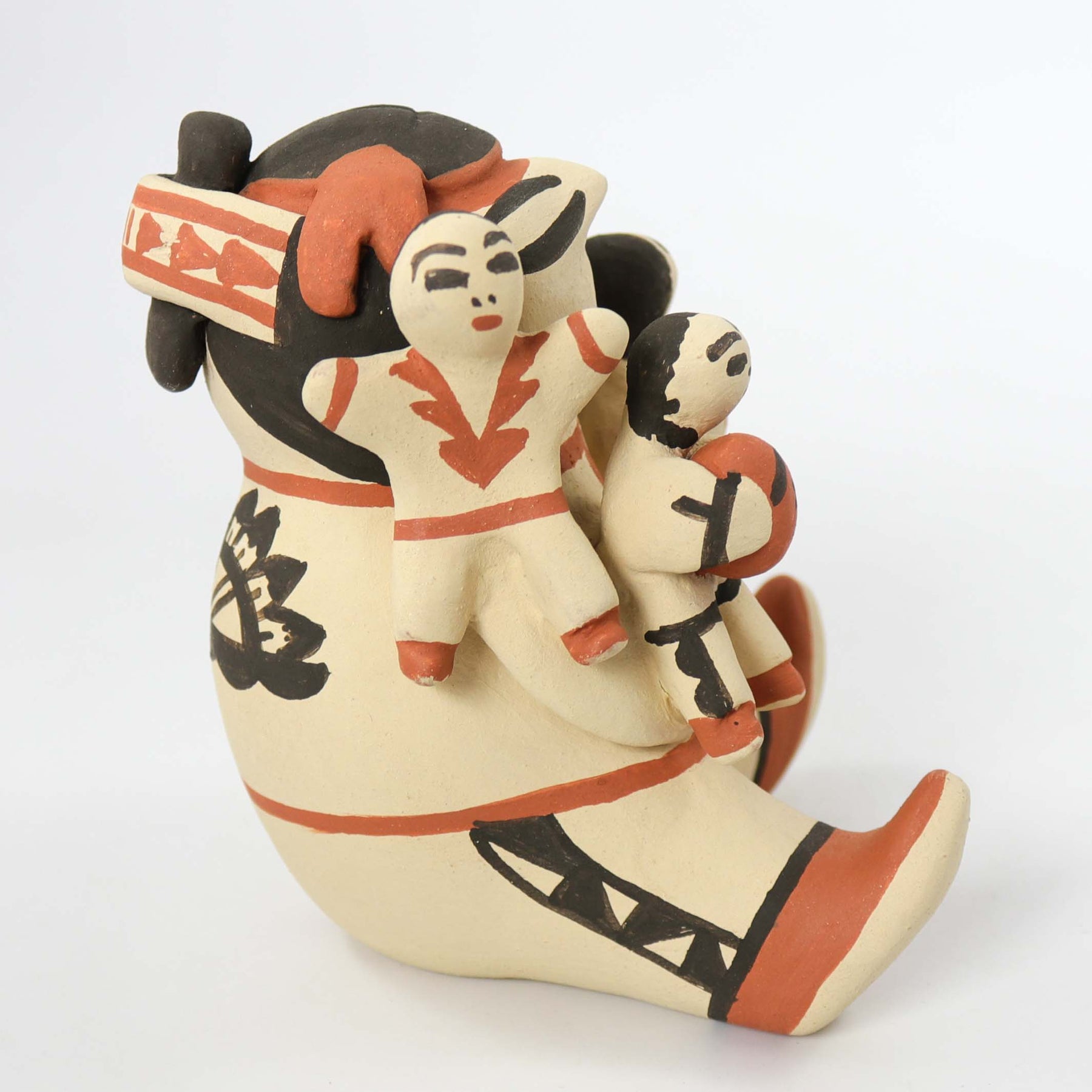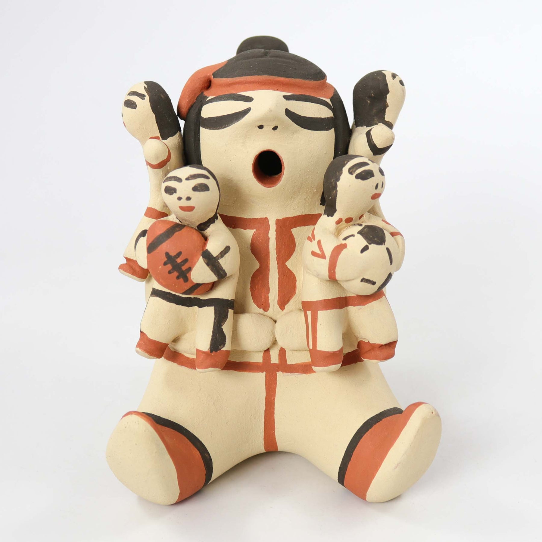 Storyteller figures are a beloved tradition in Cochiti Pueblo pottery, first created by Helen Cordero in the mid-20th century to honor the oral storytelling heritage of Pueblo culture. These figures celebrate the role of elders in passing down history, values, and cultural identity through generations.