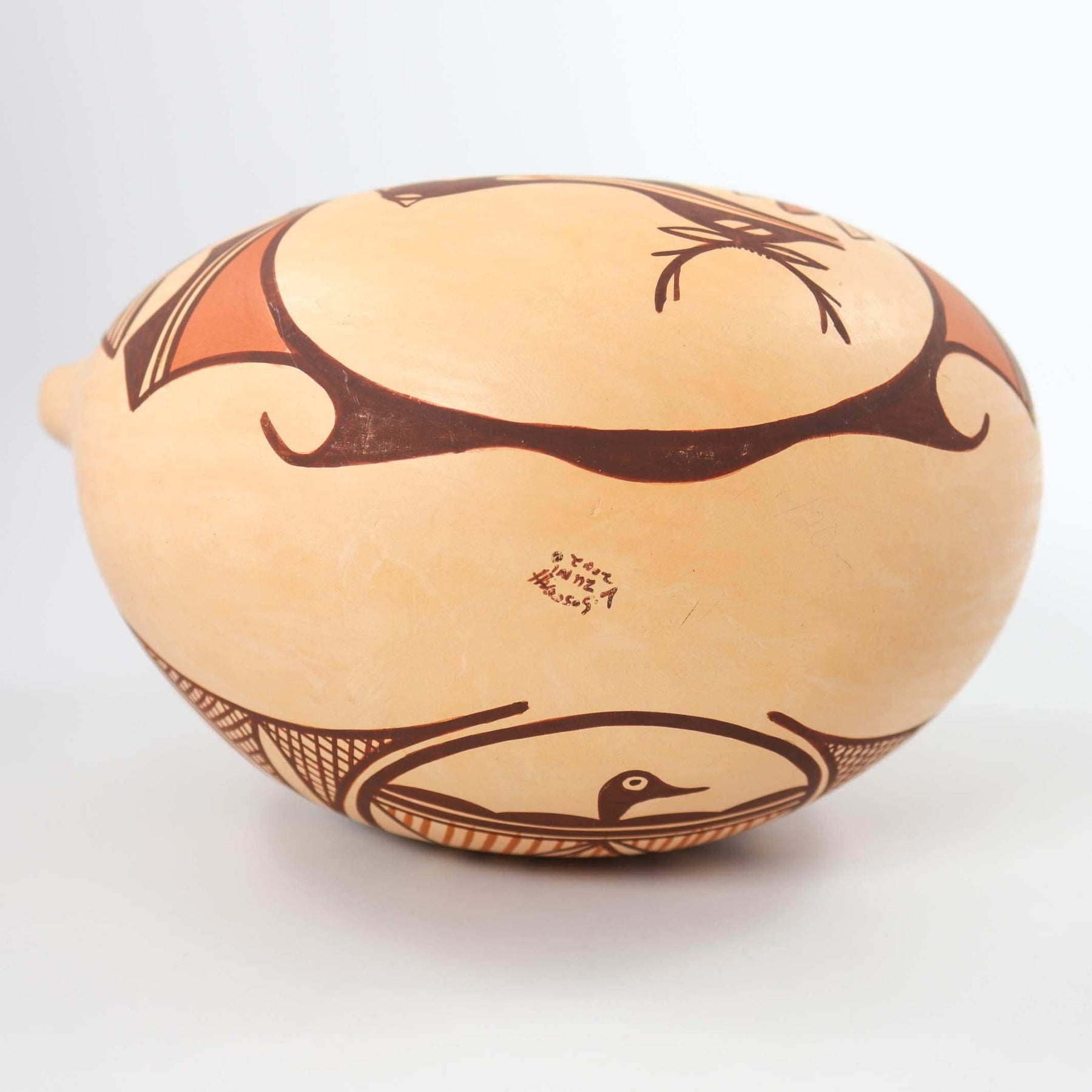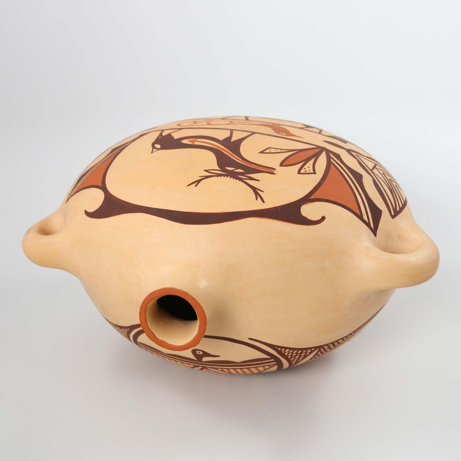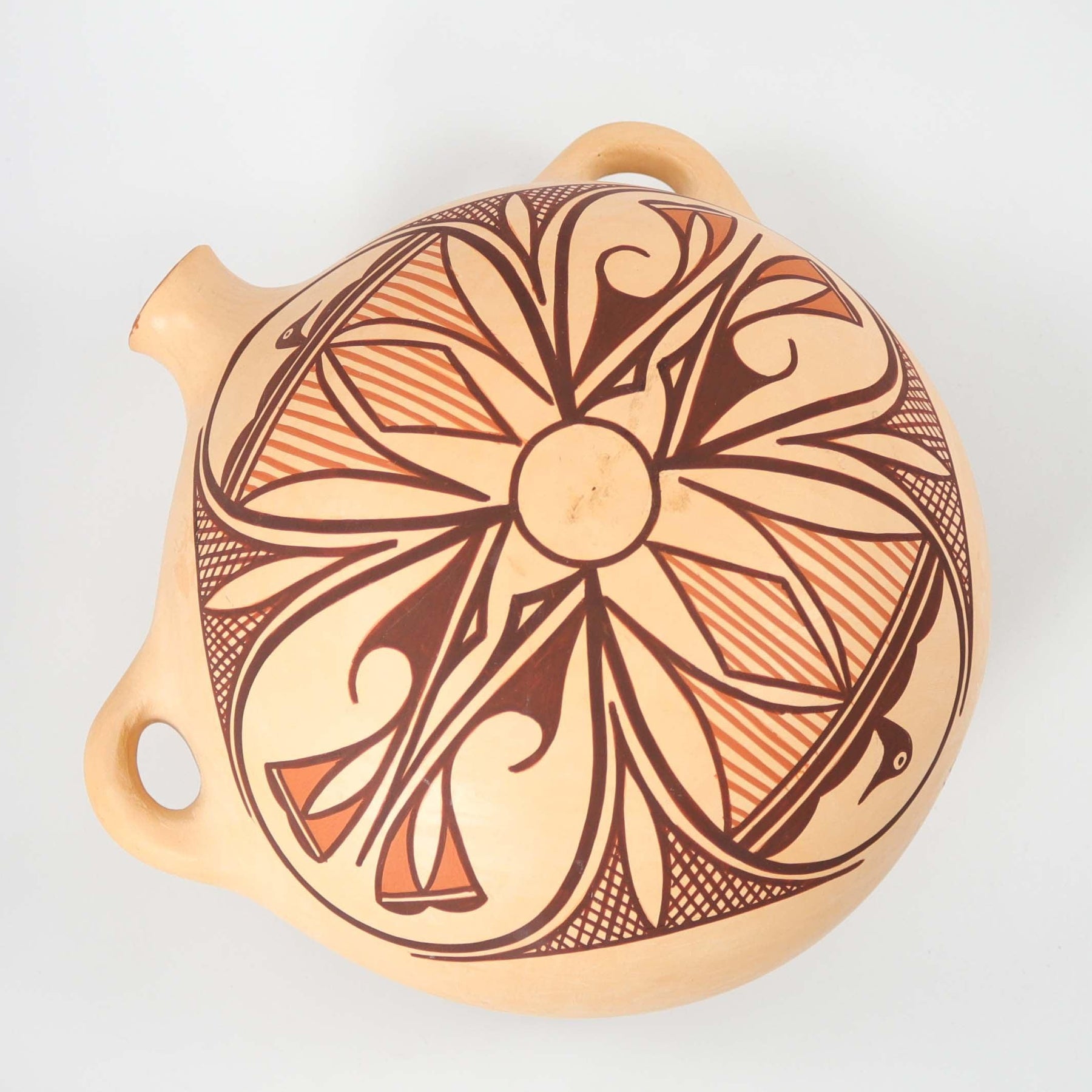 2002 Zuni Hand-Coiled and Traditionally Fired Canteen with Hand-Painted Polychrome Design Elements.
