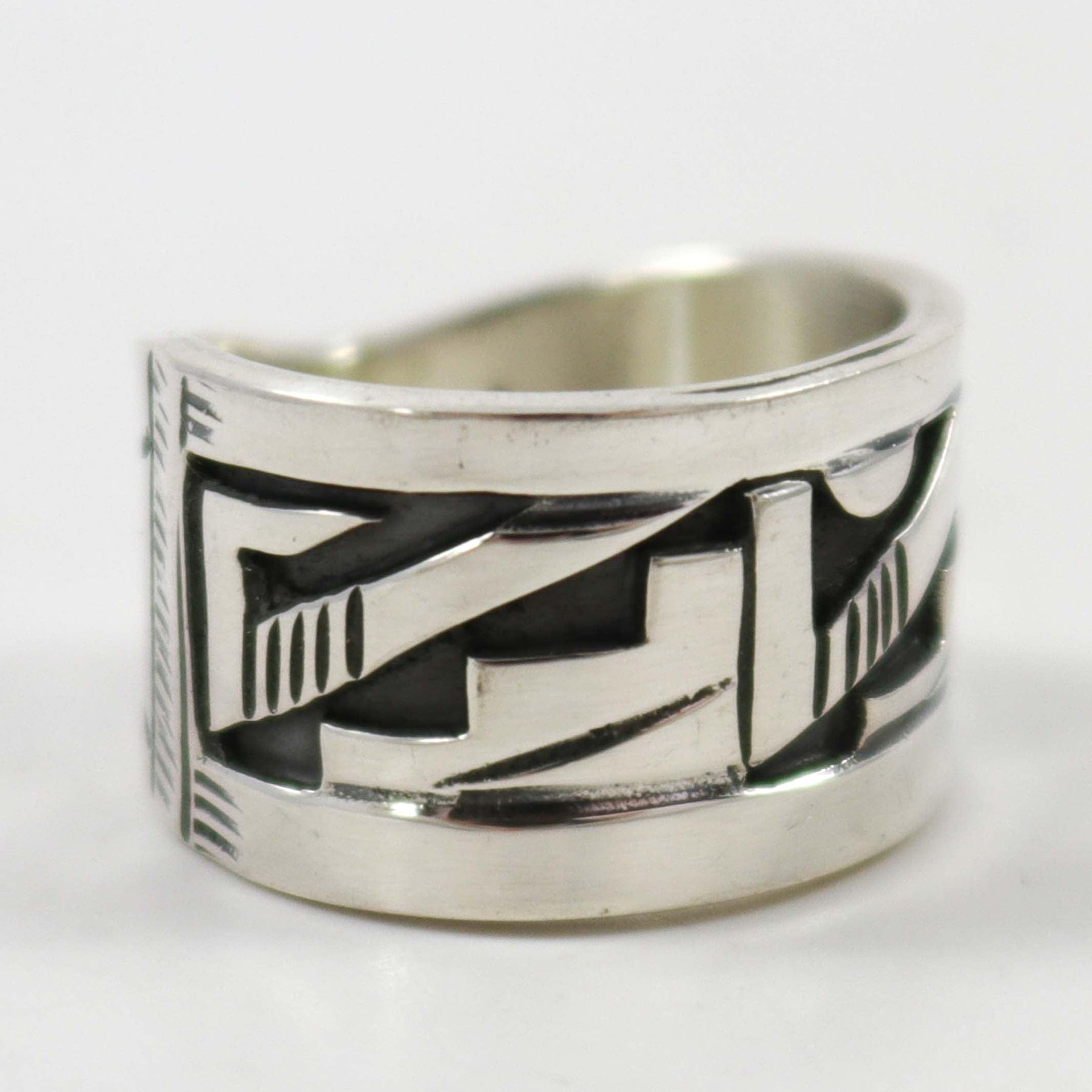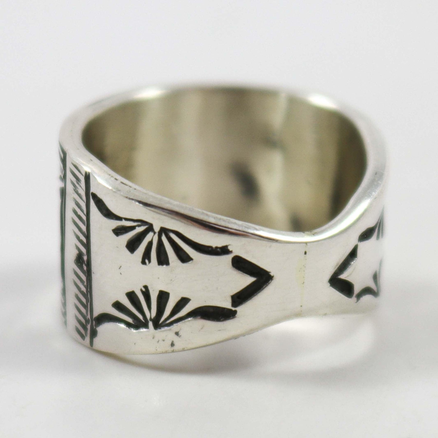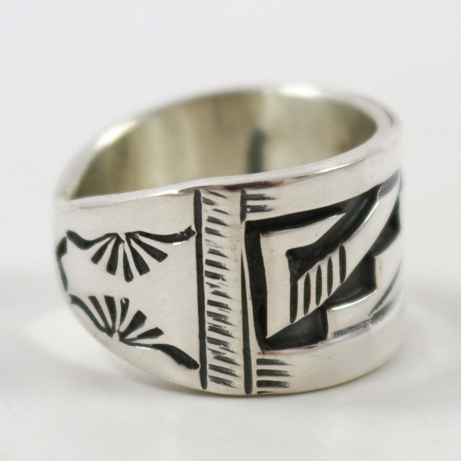 Sterling Silver Ring with Navajo Overlaid and Hand Stamped Designs.