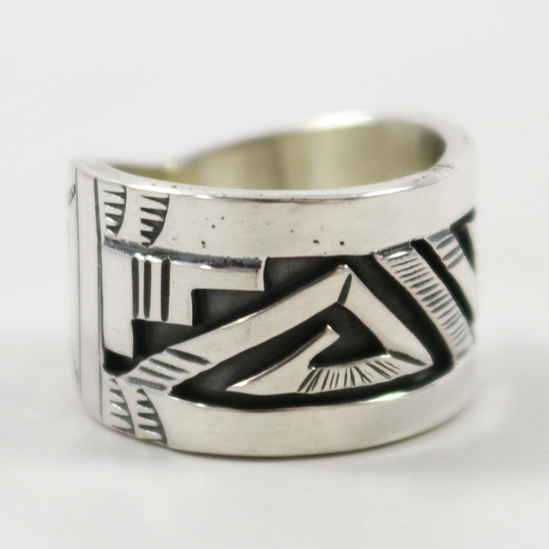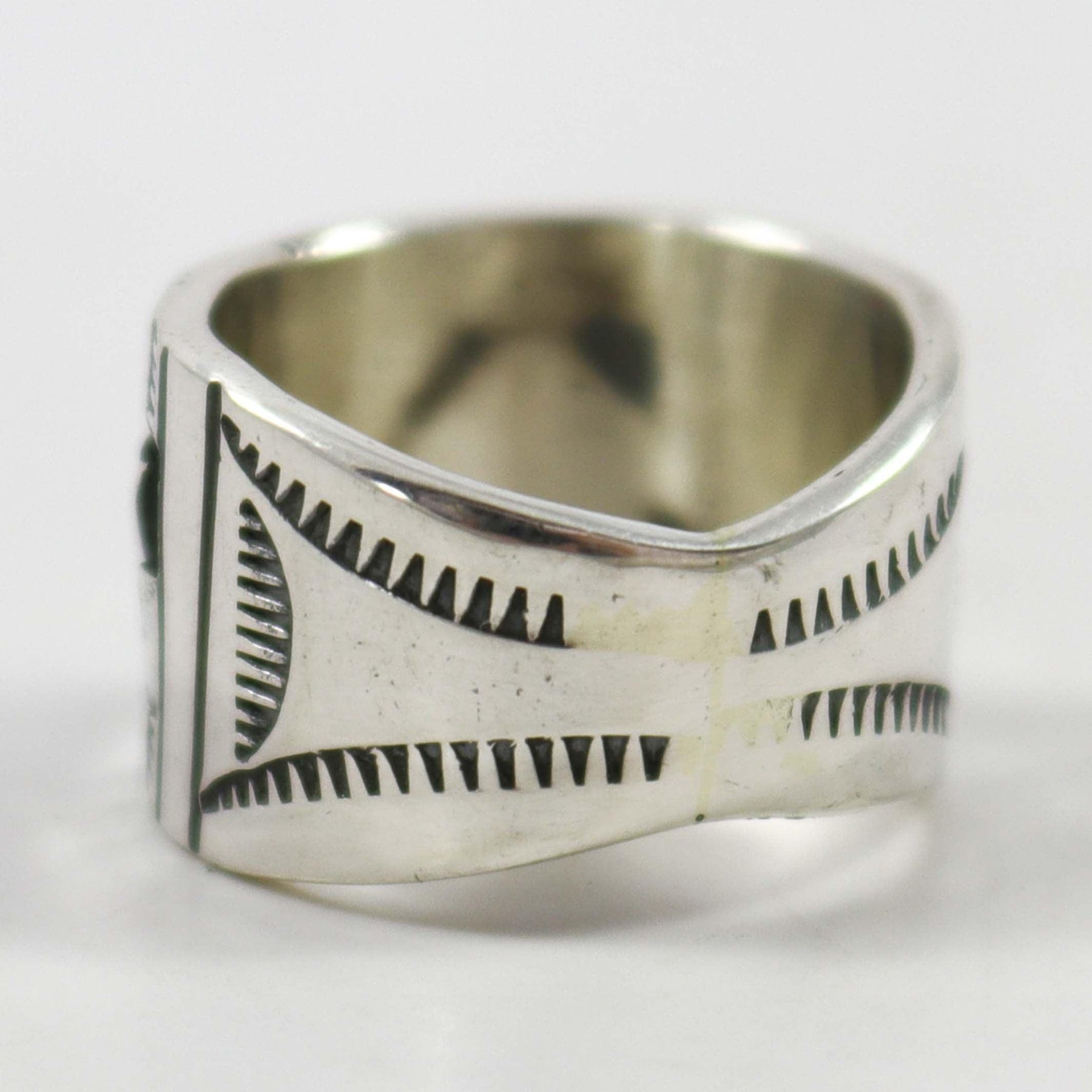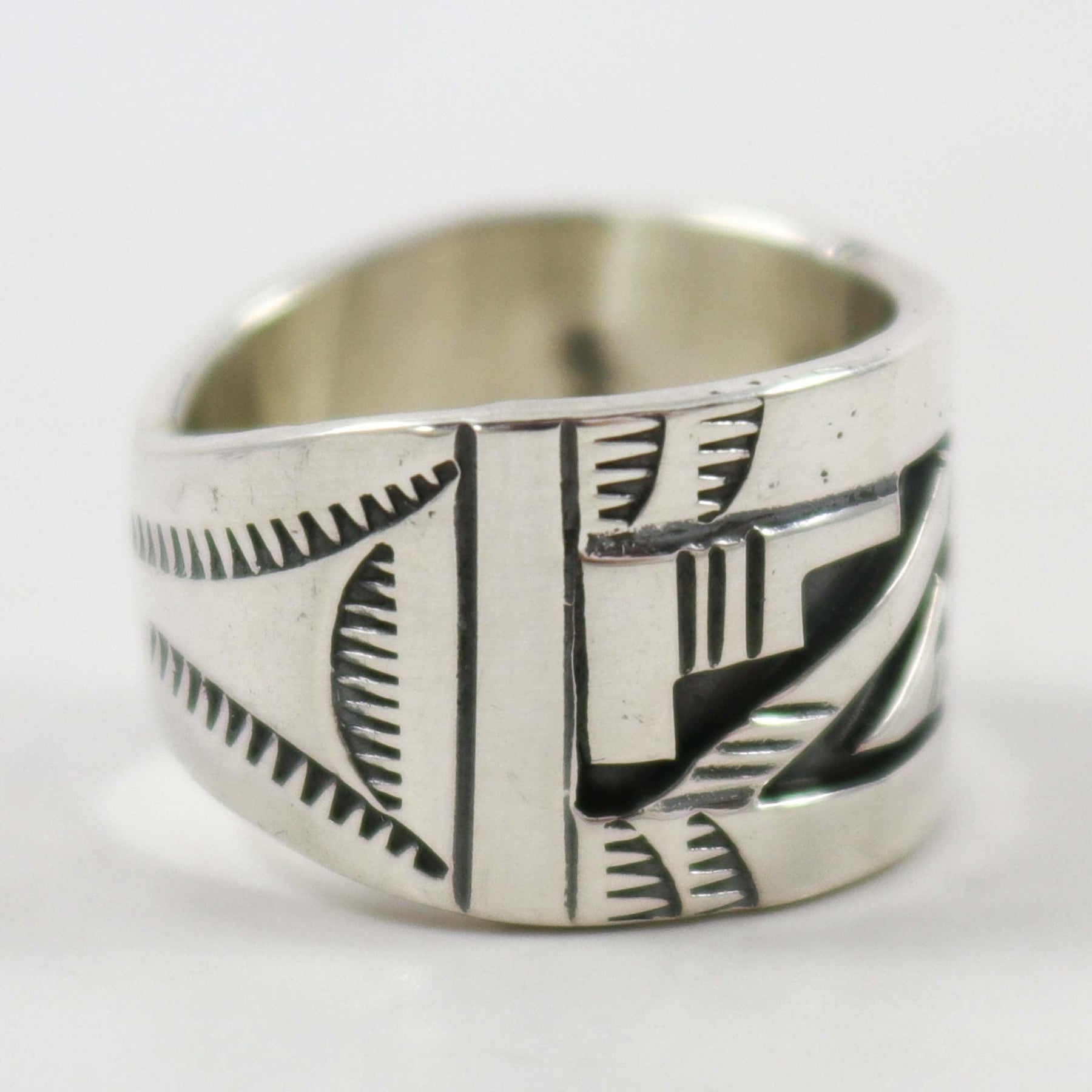 Sterling Silver Ring with Navajo Overlaid and Hand Stamped Designs.