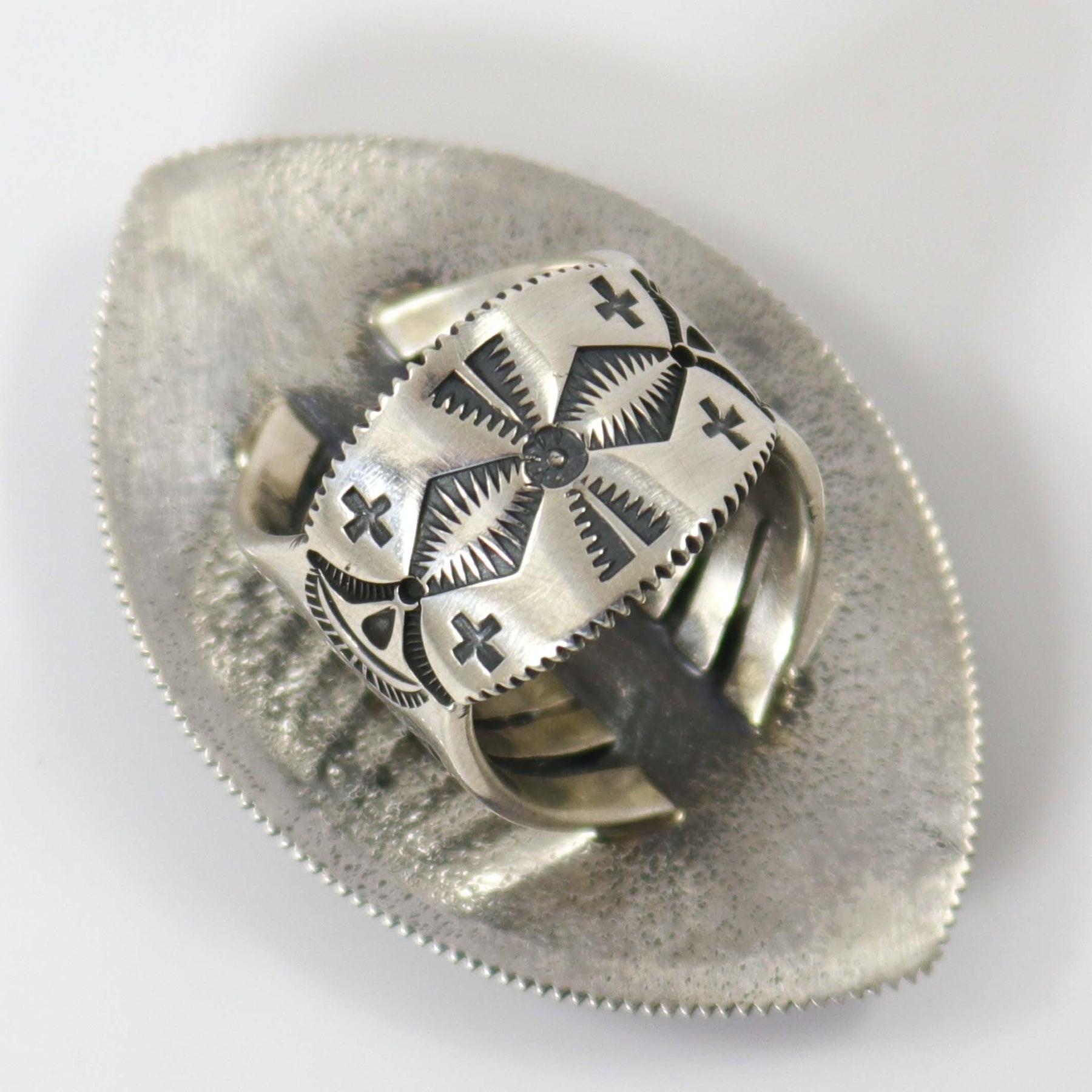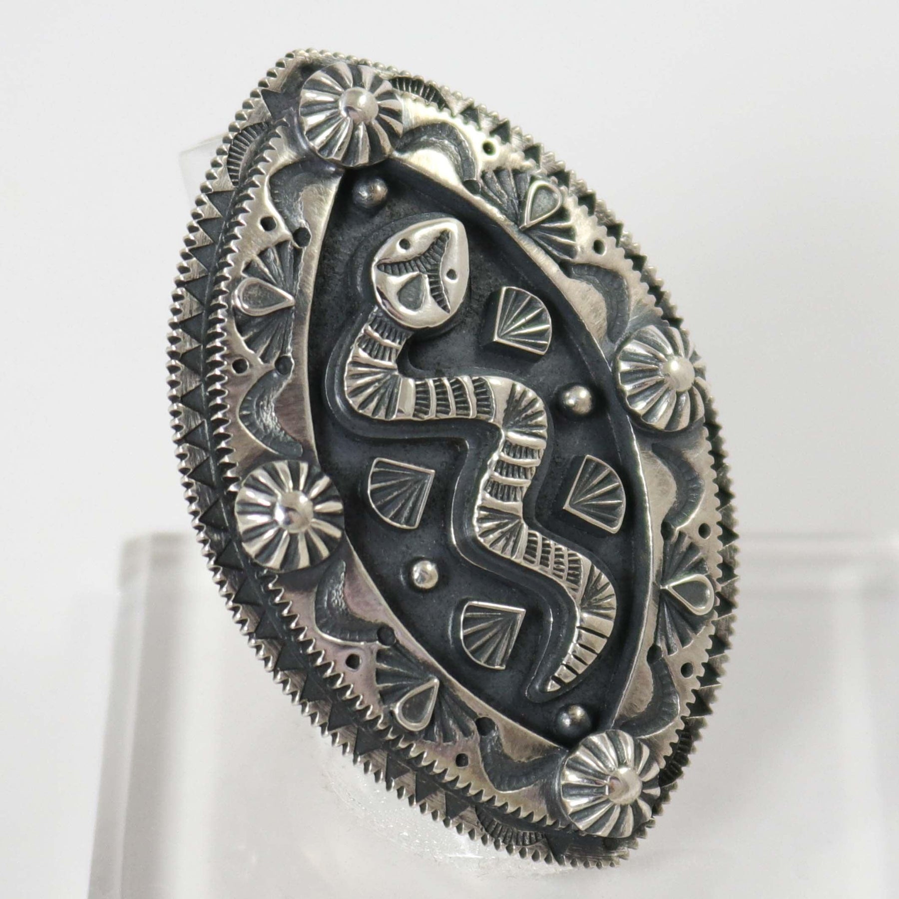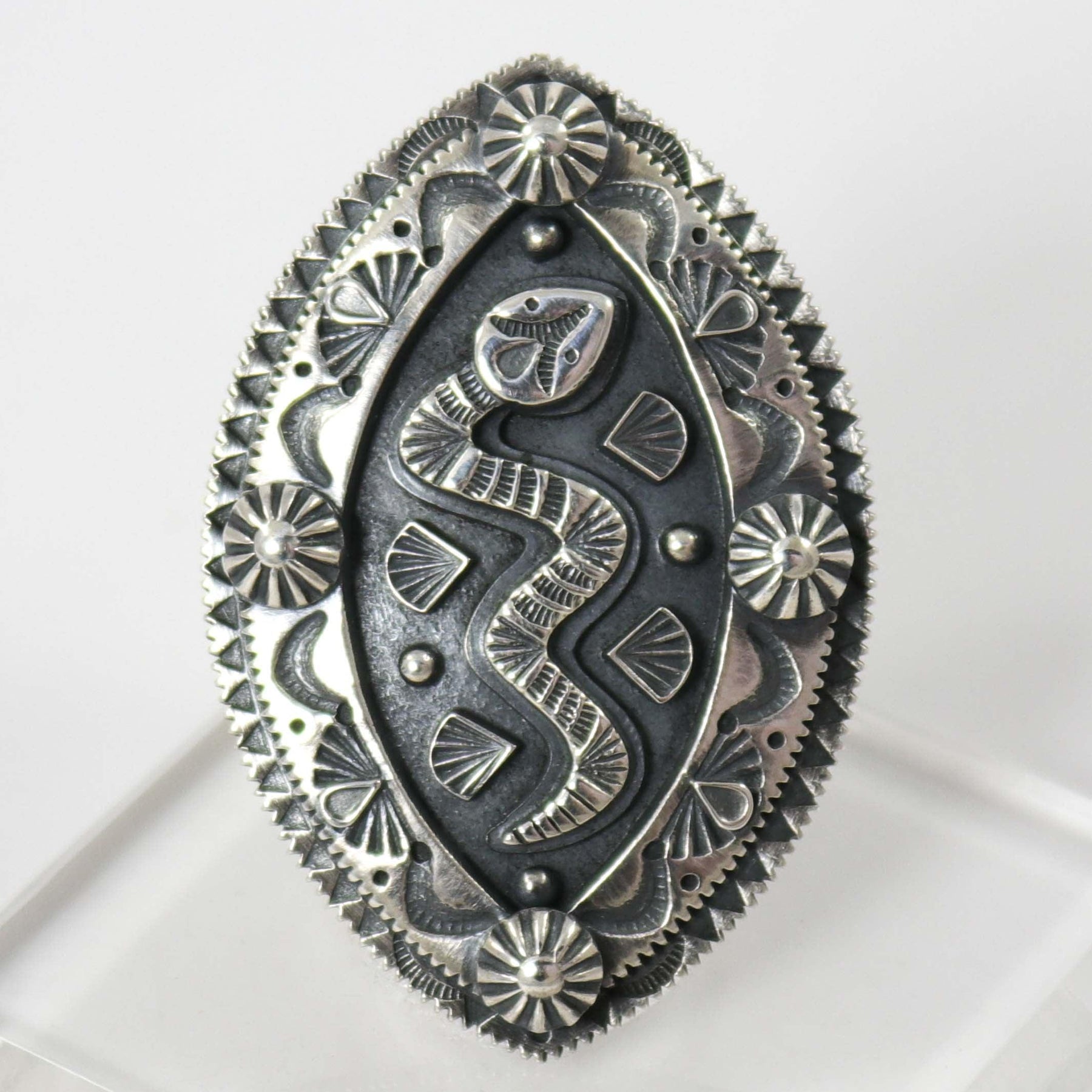 Heavy Gauge Sterling Silver Ring with Hand-Stamped and Applique Snake Design.