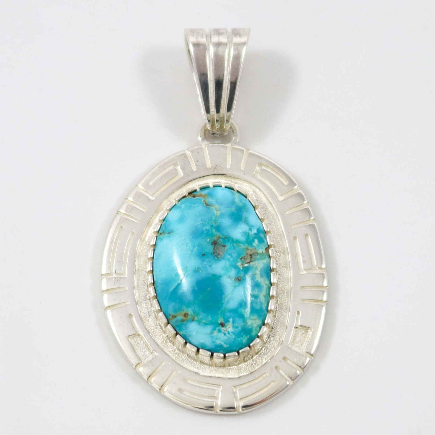 Sterling Silver Pendant with Overlaid Designs and set with Natural American Turquoise from the private collection of late Navajo artist Herbert Taylor, mine unknown.