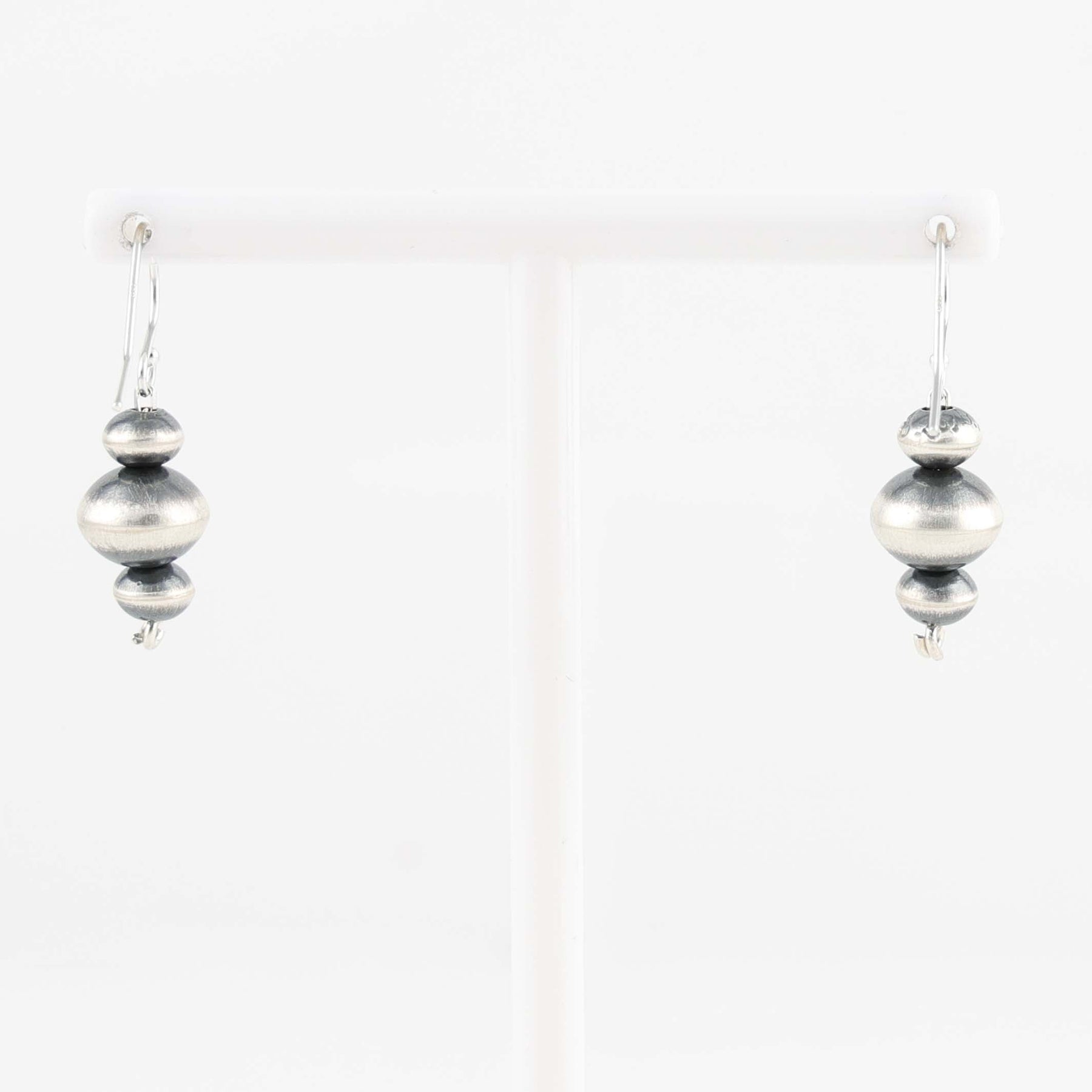 Sterling Silver French Hook Earrings with Handmade Navajo Pearl Beads in an Oxidized Finish.