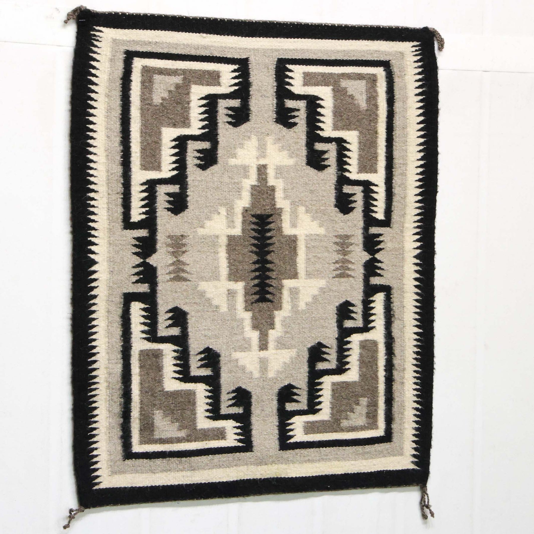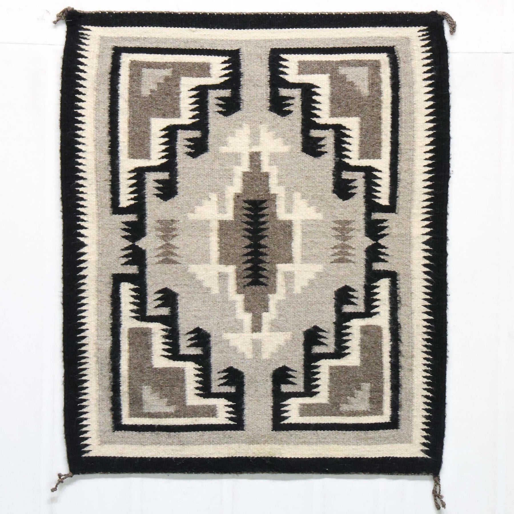 Handwoven Navajo Two Grey Hills Weaving with Natural Wool Color Palette.