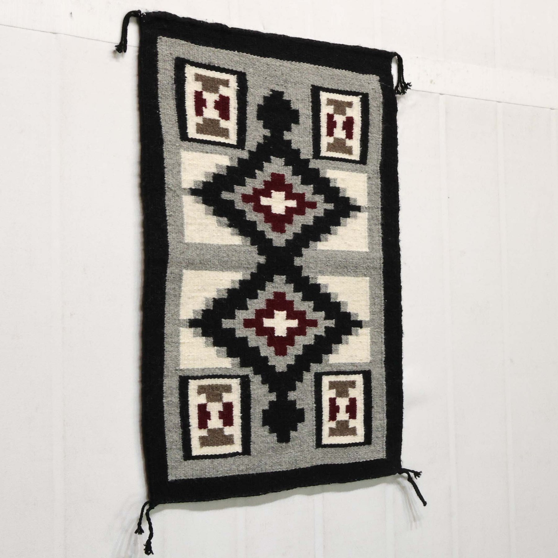 Handwoven Navajo Two Grey Hills Weaving with Natural Wool Color Palette.
