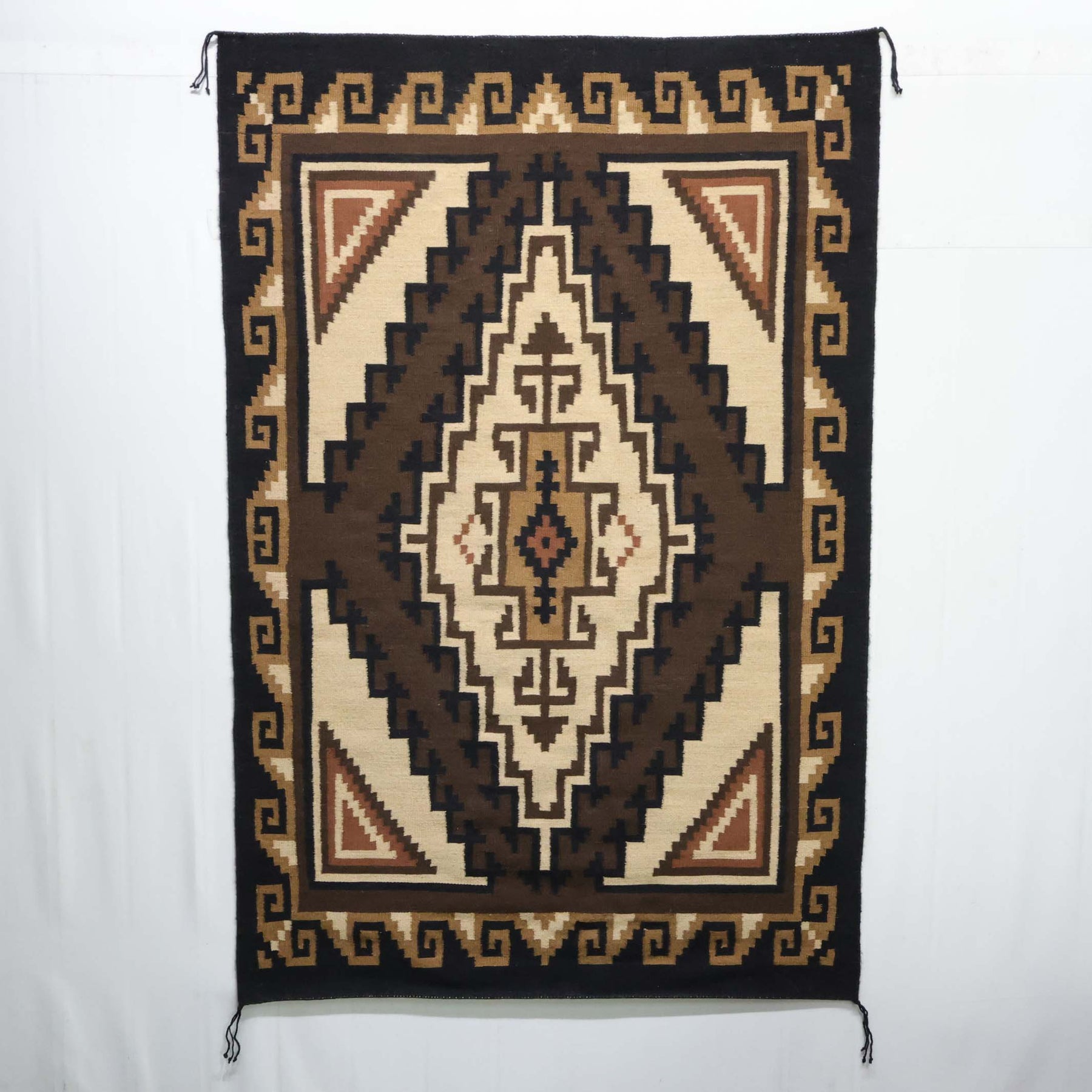 Handwoven Navajo Two Grey Hills Weaving with Warm Brown Tones.