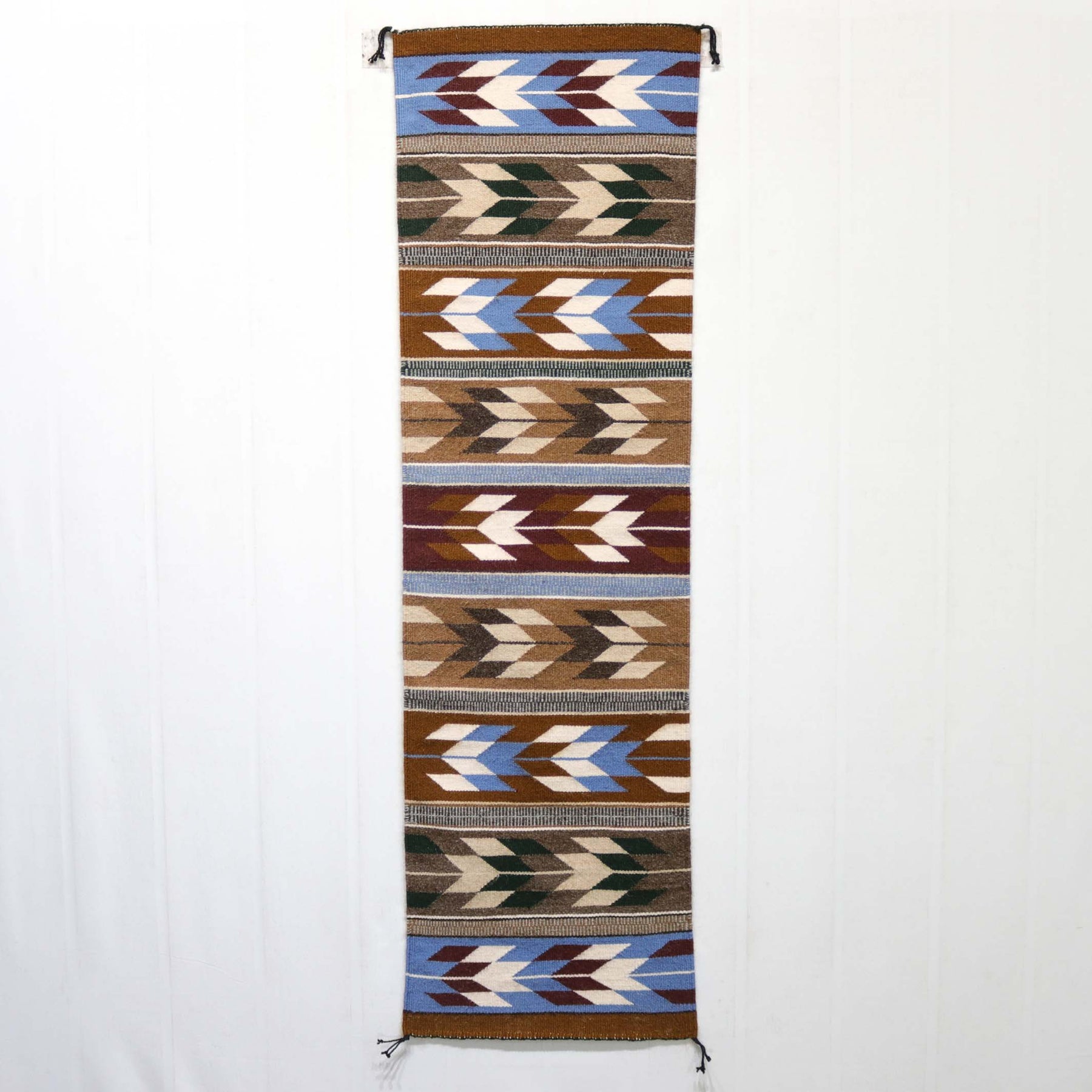 Handwoven Navajo Chinle Runner with Colorful and Geometric Banded Design.
