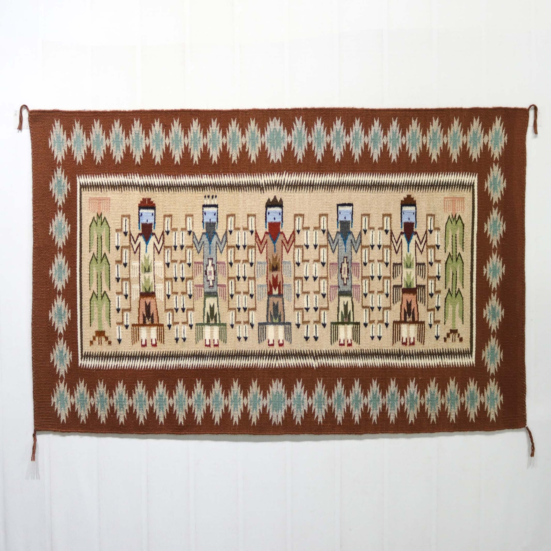 Handwoven Navajo Yei (Healing Spirit) Weaving with Intricate Details and Soft Pastel Vegetal Dyes.