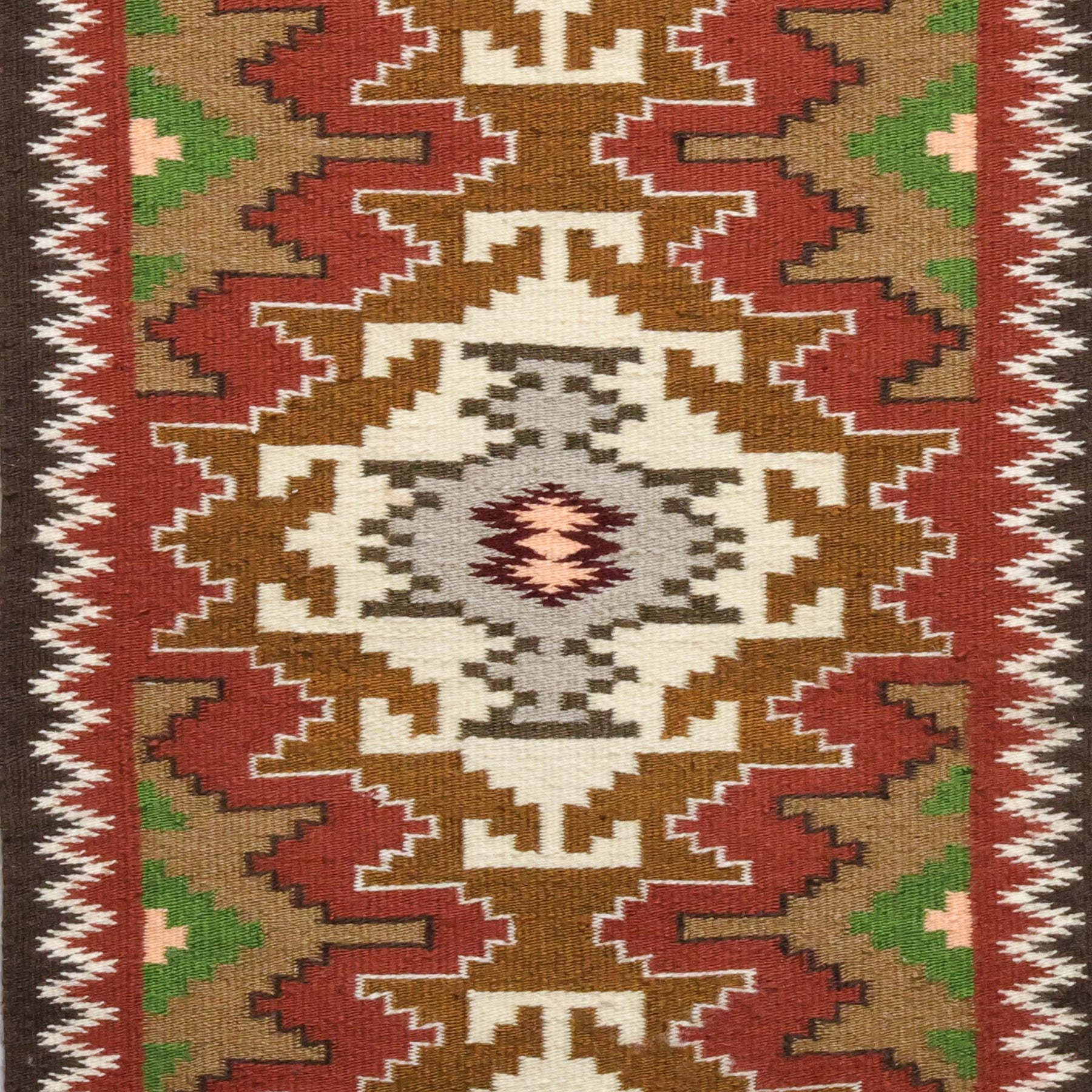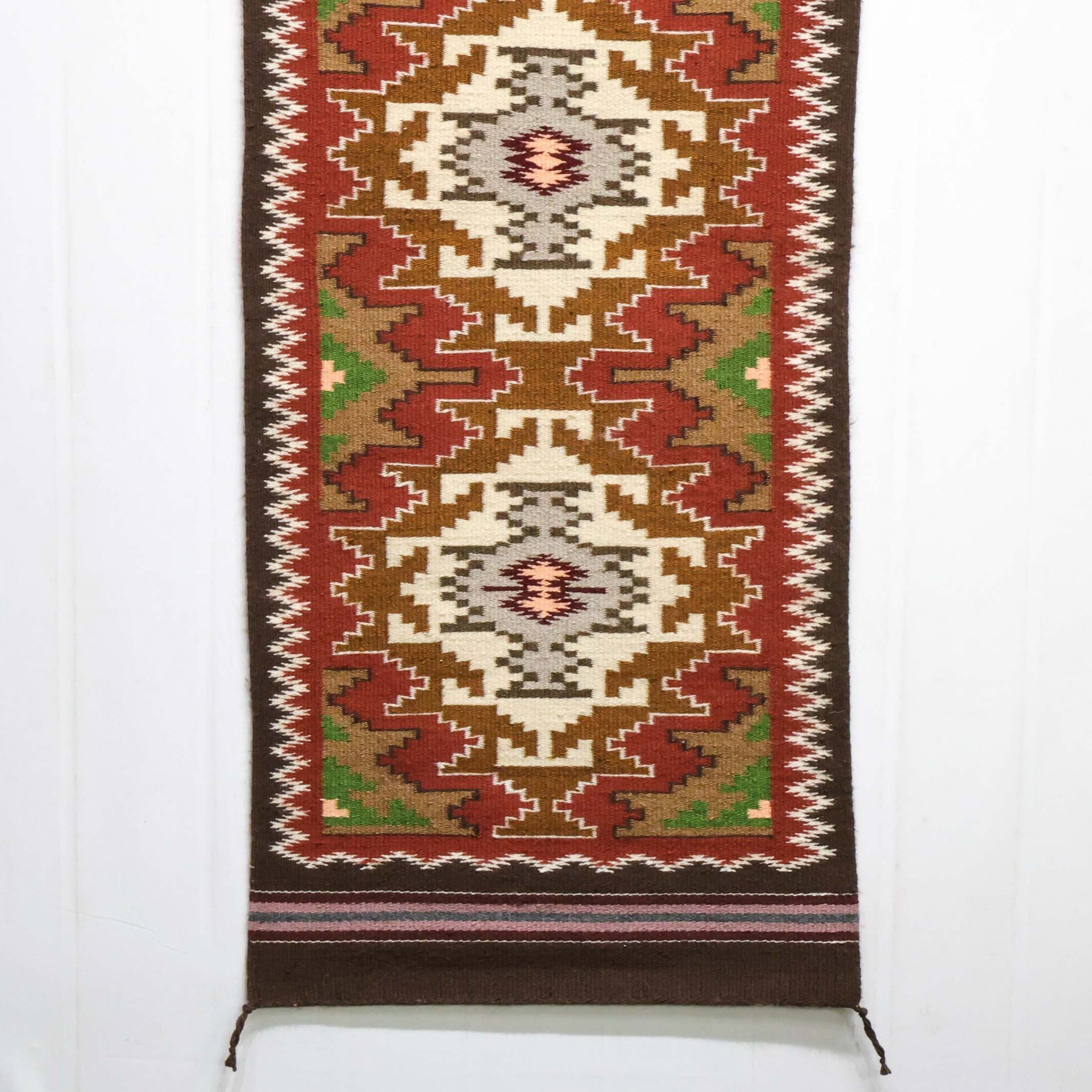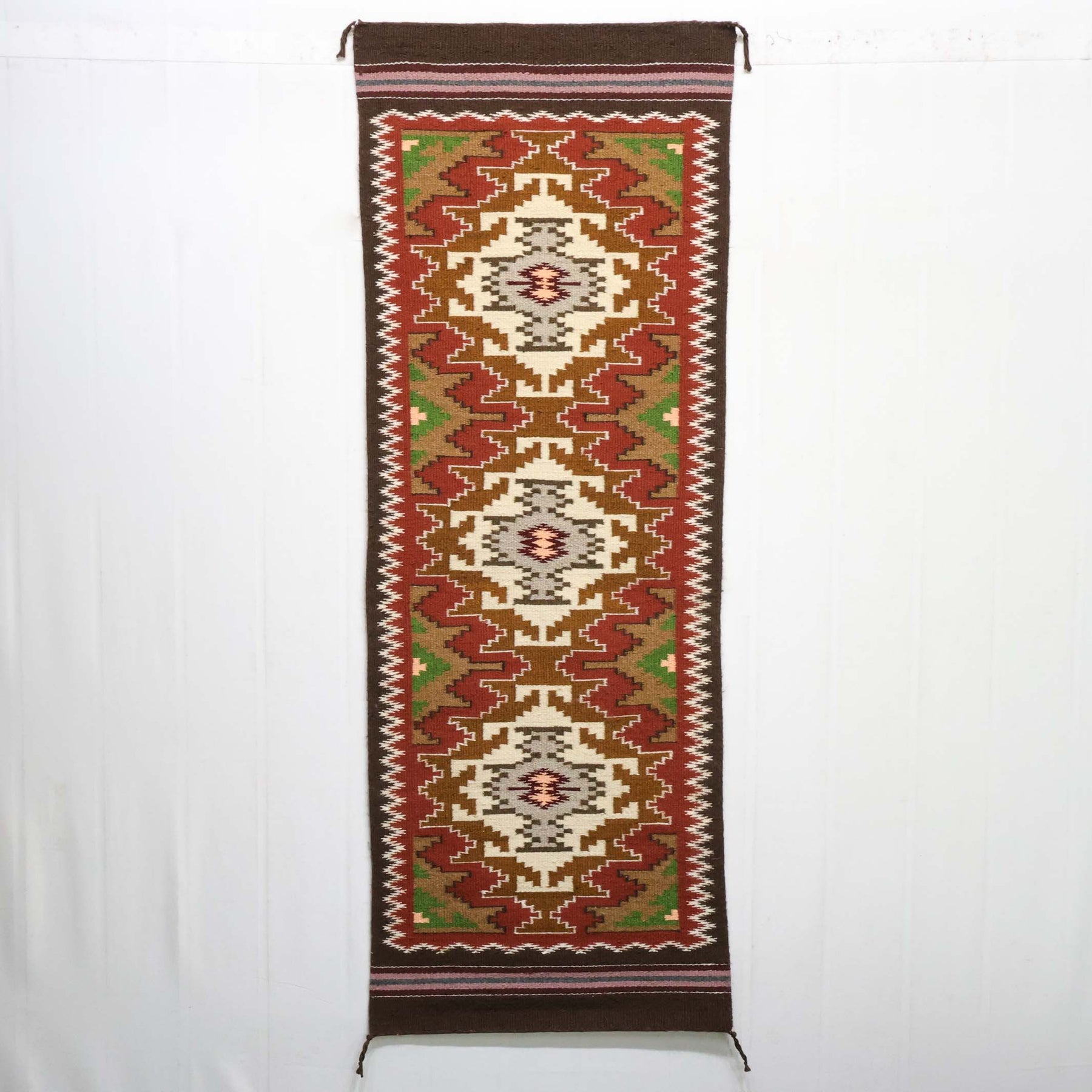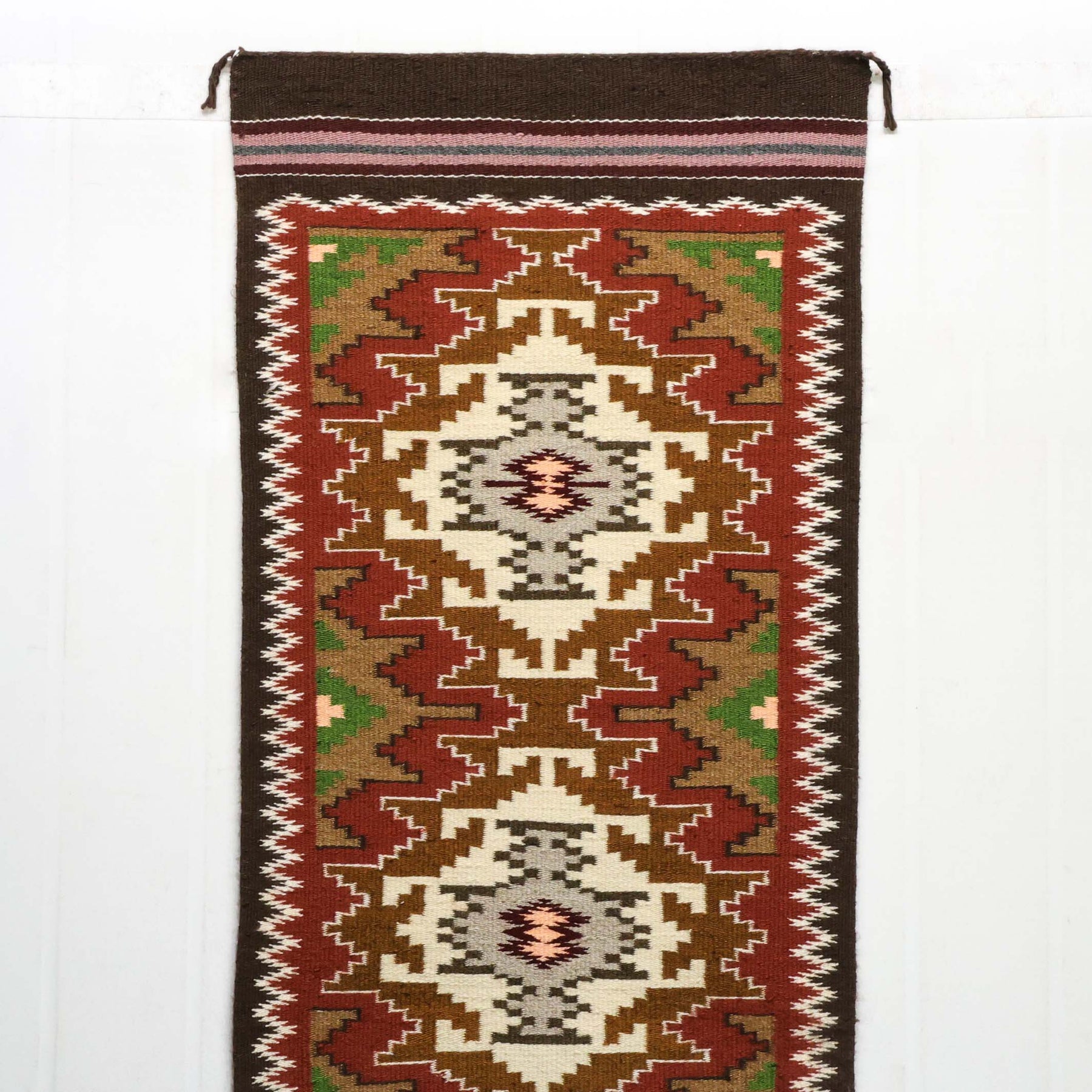 Handwoven Navajo Burntwater Runner Weaving with Warm Earth Tones.
